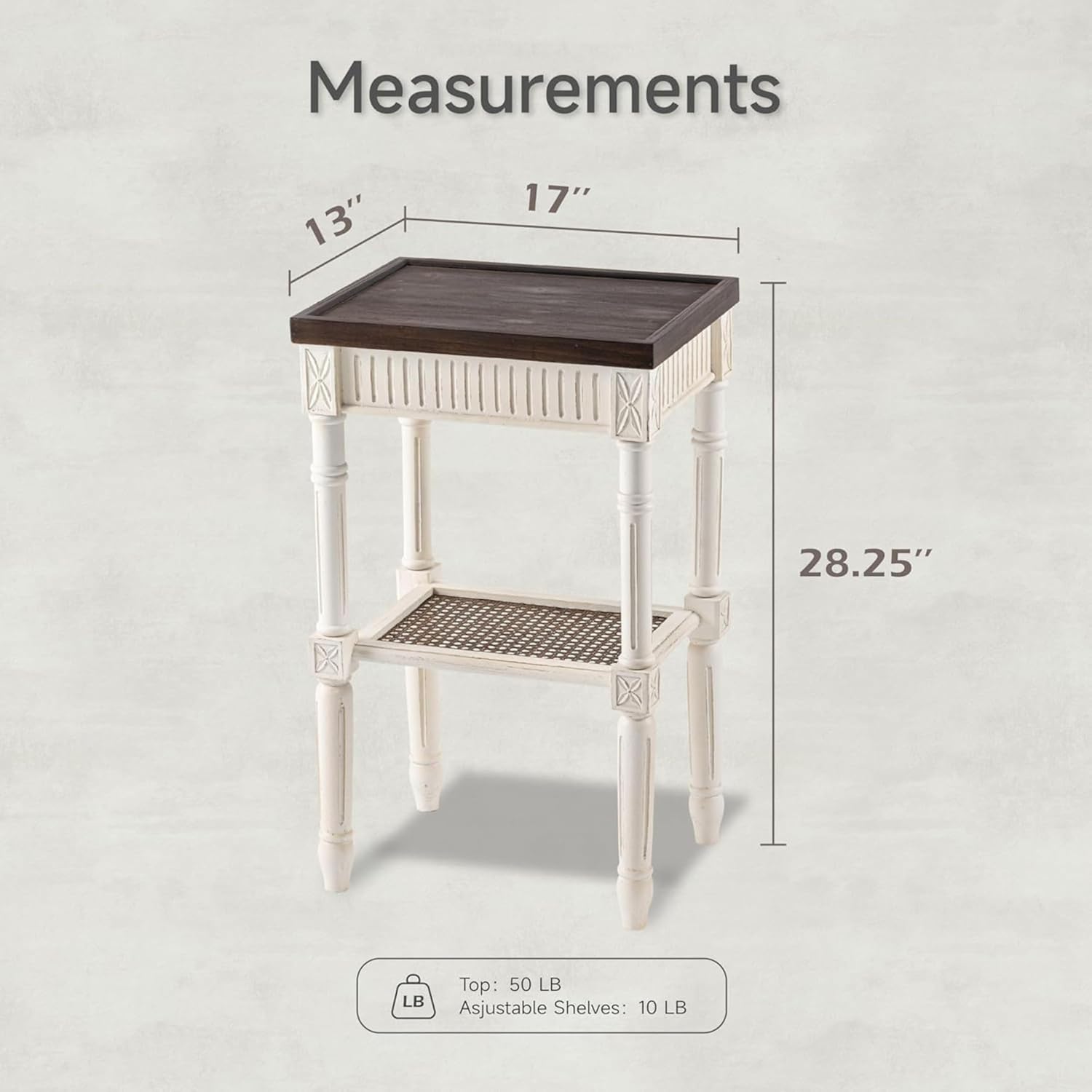 - DESIGNER STYLE: Whether flanked on either side of your sofa, or placed next to an accent chair in the living room, this french country distressed end table is your trusty sidekick with the low-key silhouette and rich detailed features.