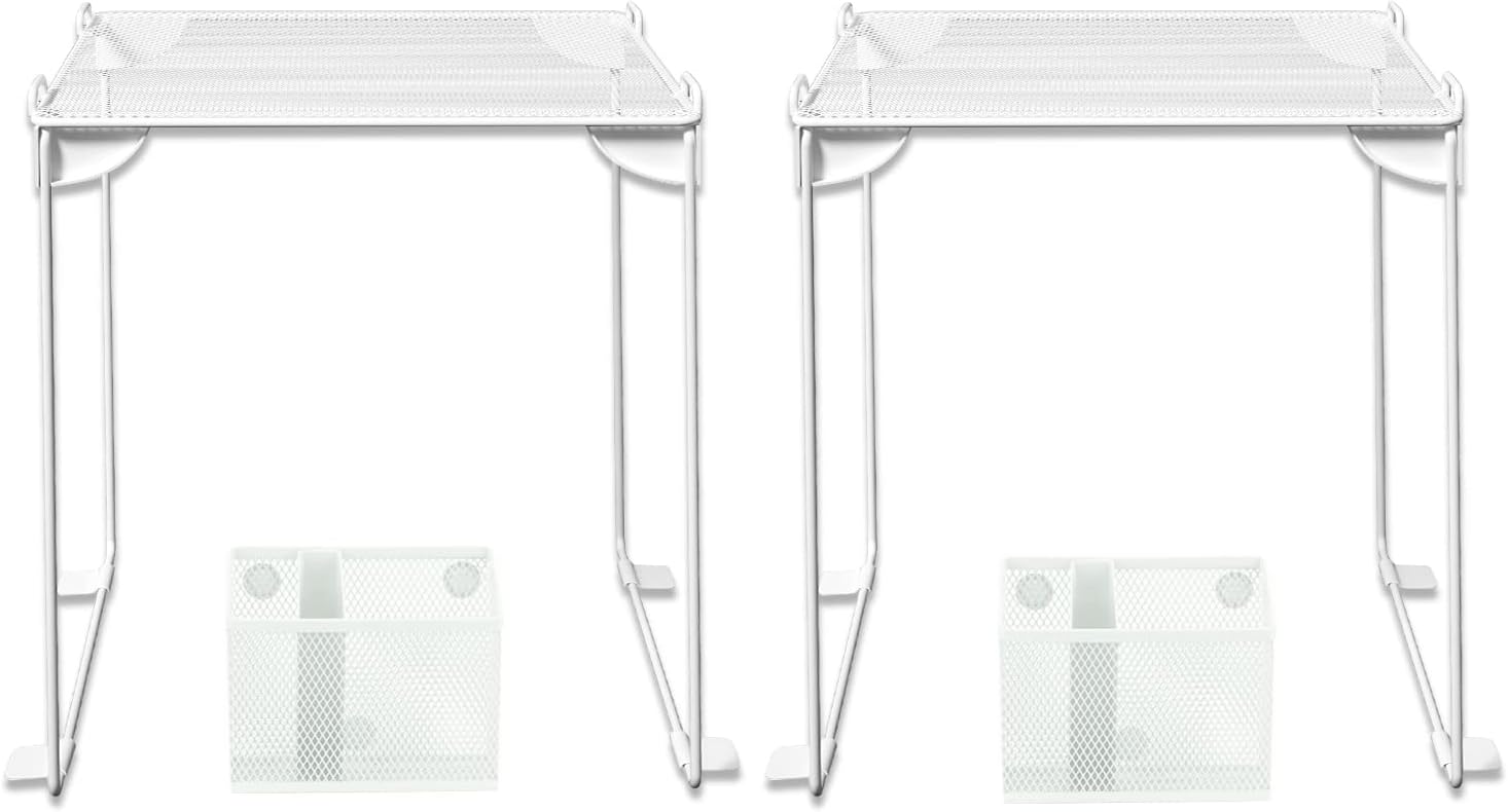 Neudeoc Locker Organizer and Accessories Kit, Includes Mesh Locker Shelf and Magnetic Pen Holder, Suitable for School, Work, Kitchen and Bathroomn (Pack of 4, White)