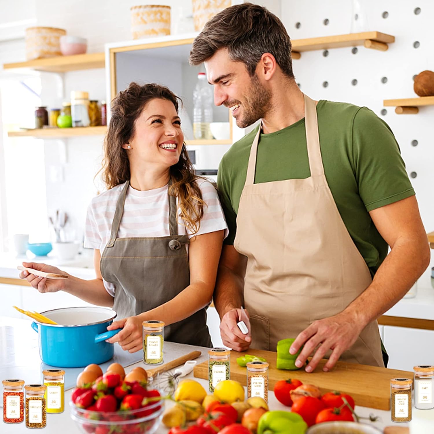 - 【Perfect Small Spice Containers Gift】These empty airtight glass spice jars with labels and lids work. Fill with herbs, spice blends, or tea samples—ideal for holidays, housewarmings. Cooks love them for beauty and utility, bringing joy every use.