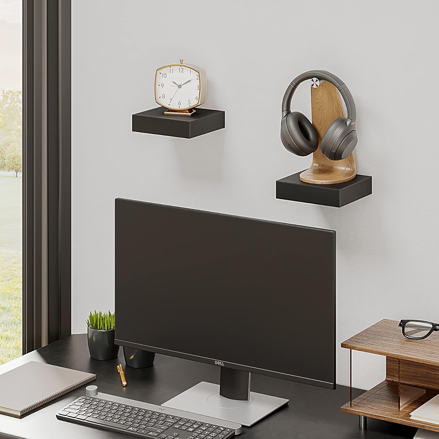 BAMEOS Small Floating Shelves for Wall, Small Black Shelf 5.9 * 5.7 Inch Display Ledges for Decor, Mini Shelf for Wall, Black