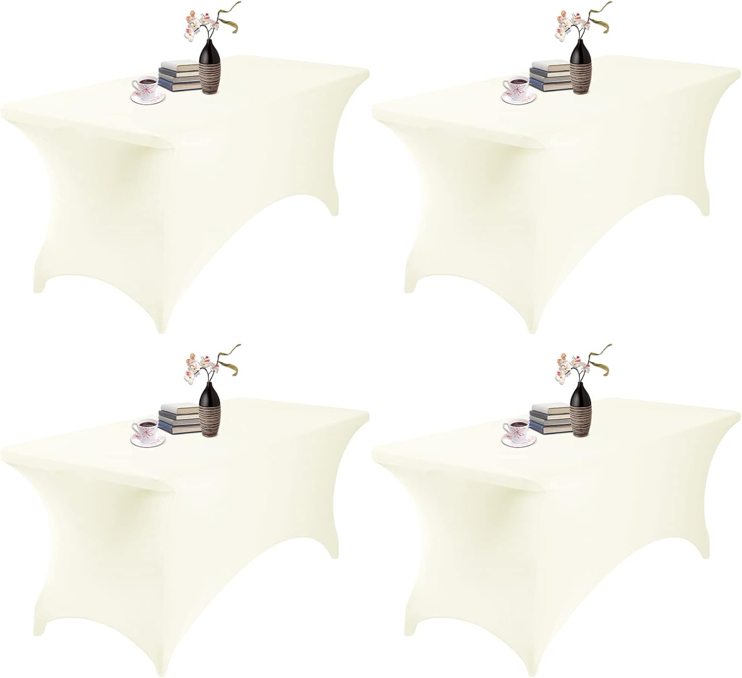 4Pack Spandex Waterproof Table Covers 6ft,Spandex 6ft Waterproof Table Cover for Party,Wedding, Banquet, and Events(Ivory)