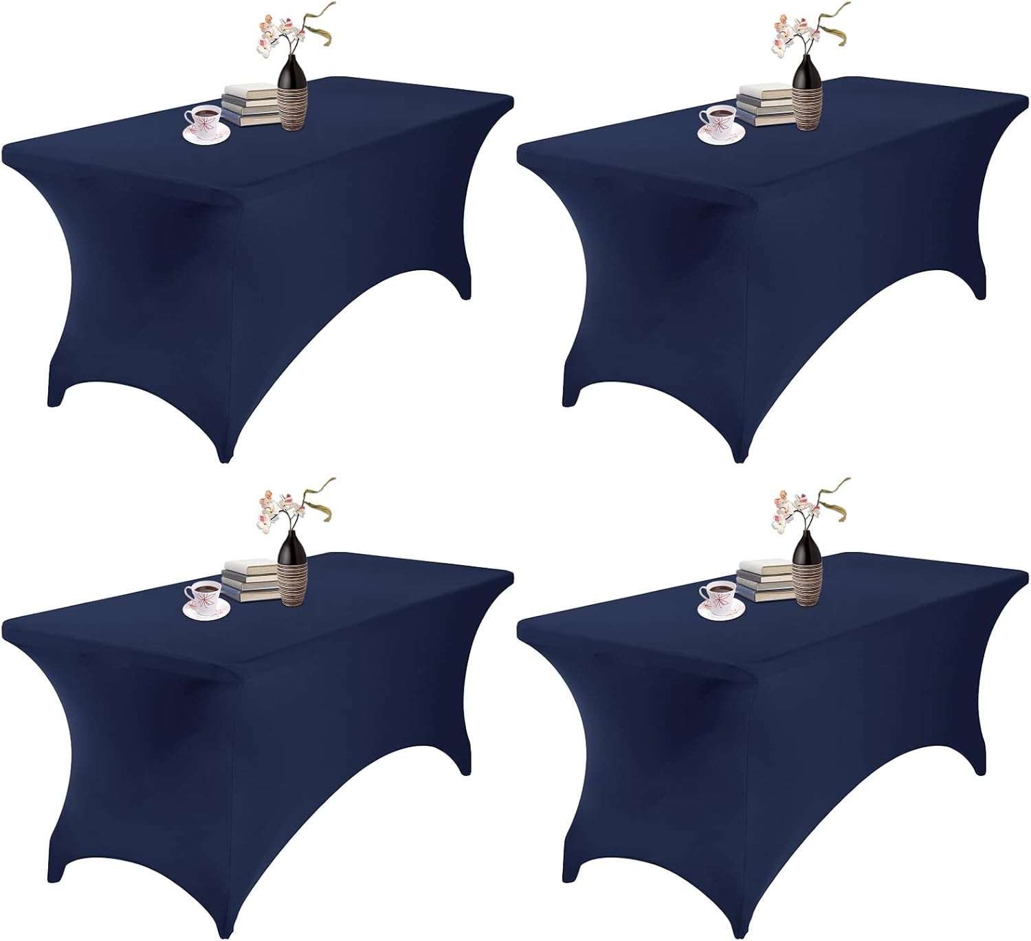 4Pack Spandex Waterproof Table Covers 6ft,Spandex 6ft Waterproof Table Cover for Party,Wedding, Banquet, and Events(Navy)