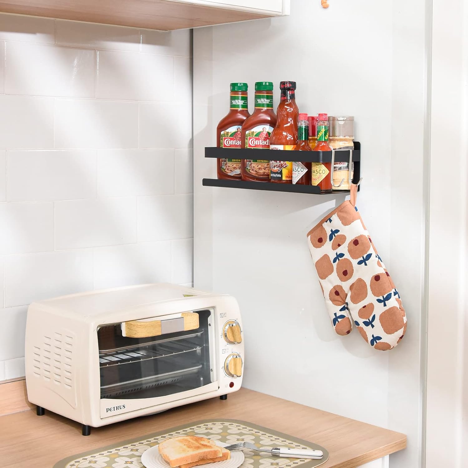 Spice Rack for Rrefrigerator Kitchen Home Organization and Storage Adhesive Rack (2 Pack,Black)