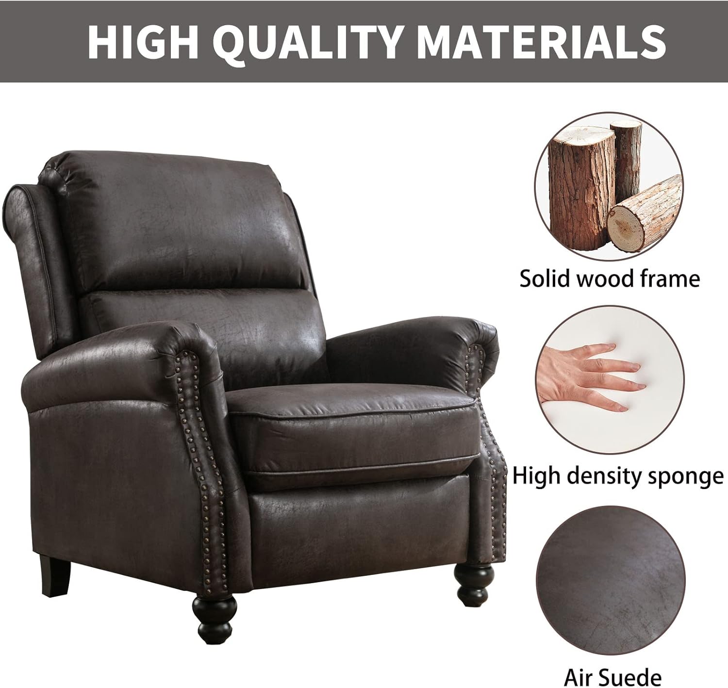 - Distinctive Rivet Design: Simple and generous backrest design, round armrests inlaid with rivet decoration, make your home more classic and stylish. You can put this push back recliner in the living room, study, bedroom, office, and enjoy a comfortable life.