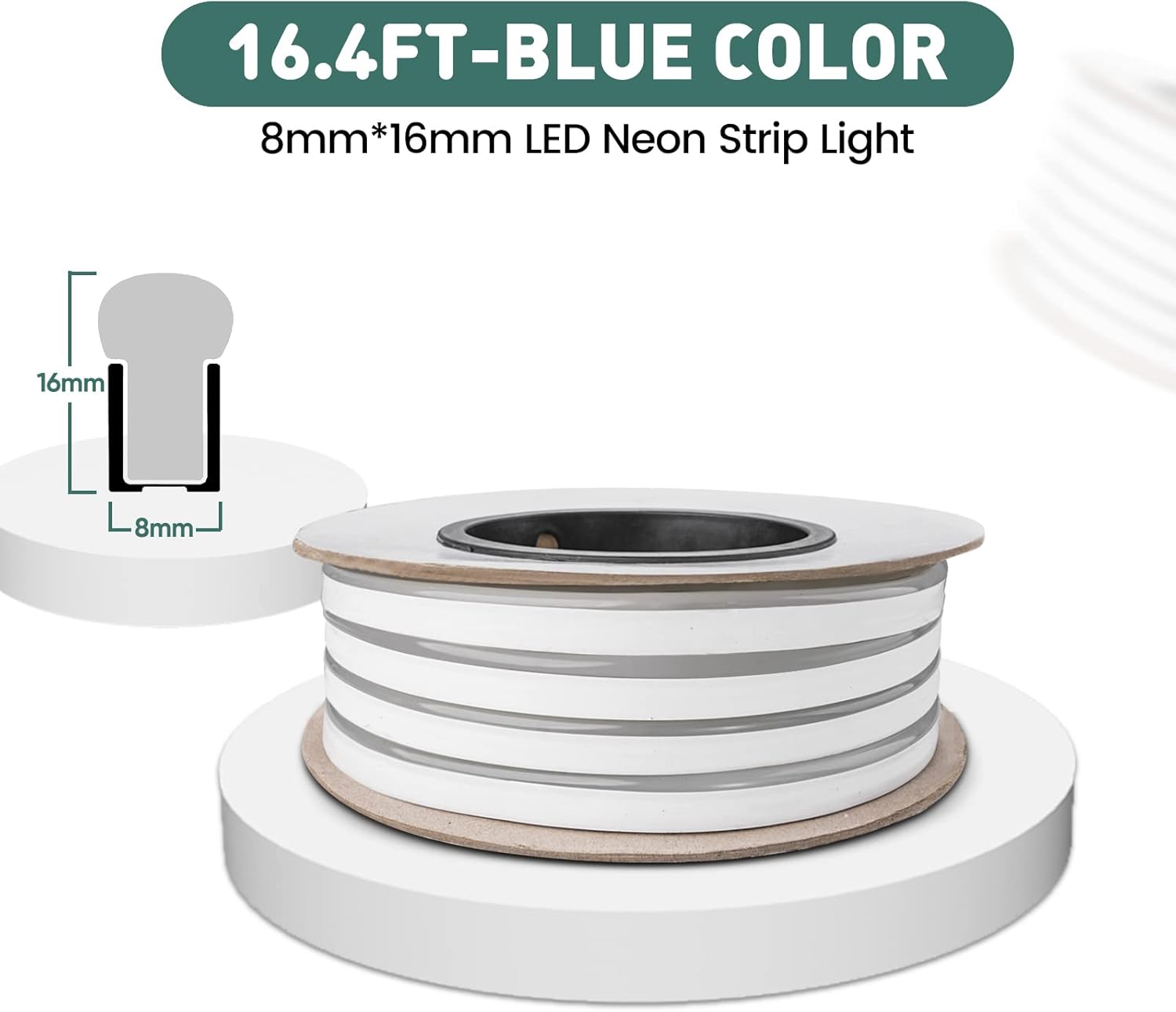 GZBtech Flexible LED Neon Rope Lights 16.4FT,AC 110-120V Waterproof Neon Strip Light, 120LEDs/M Cuttable Connectable Rope Lighting for Indoor Outdoor Home Decor/Commercial Building Use-Blue 5M