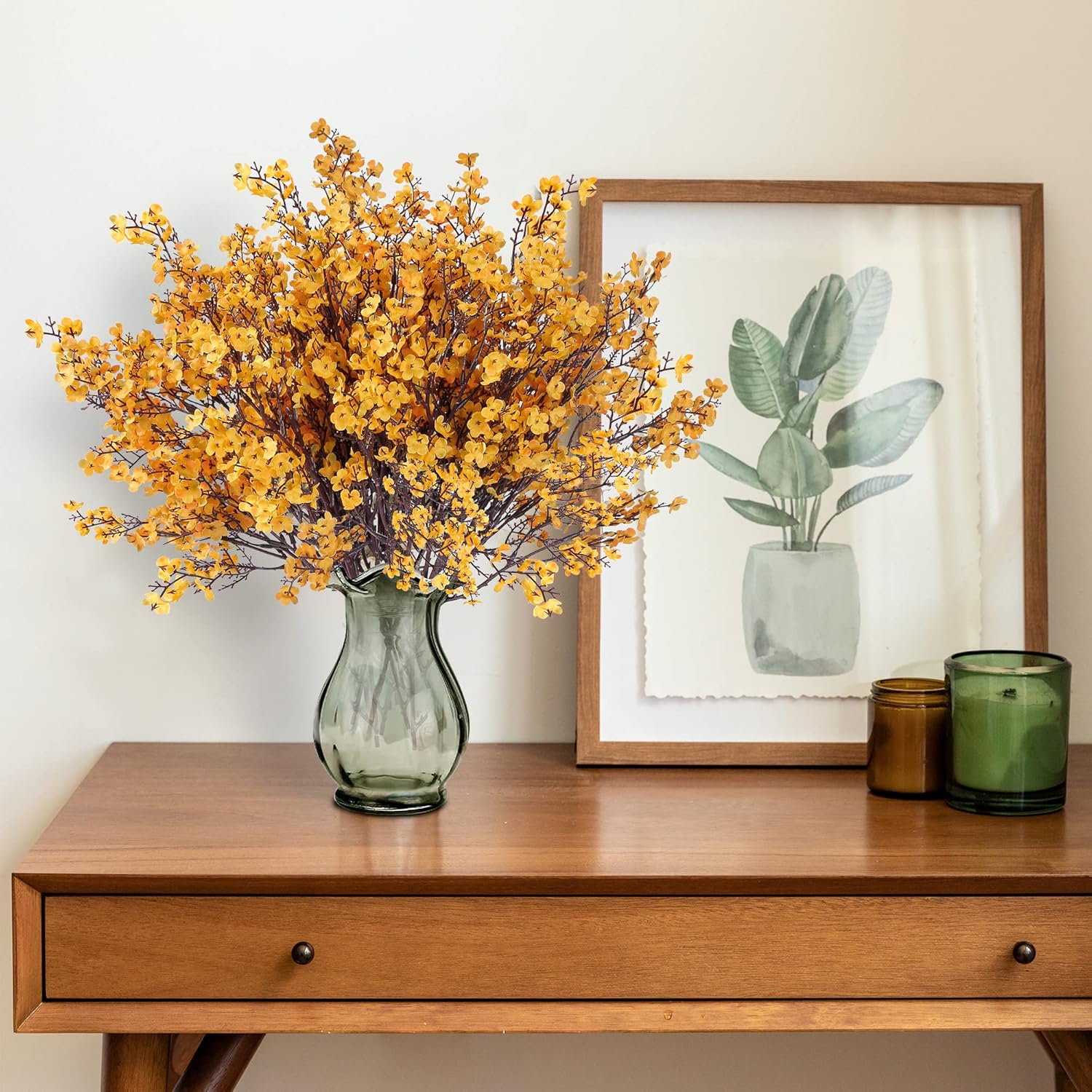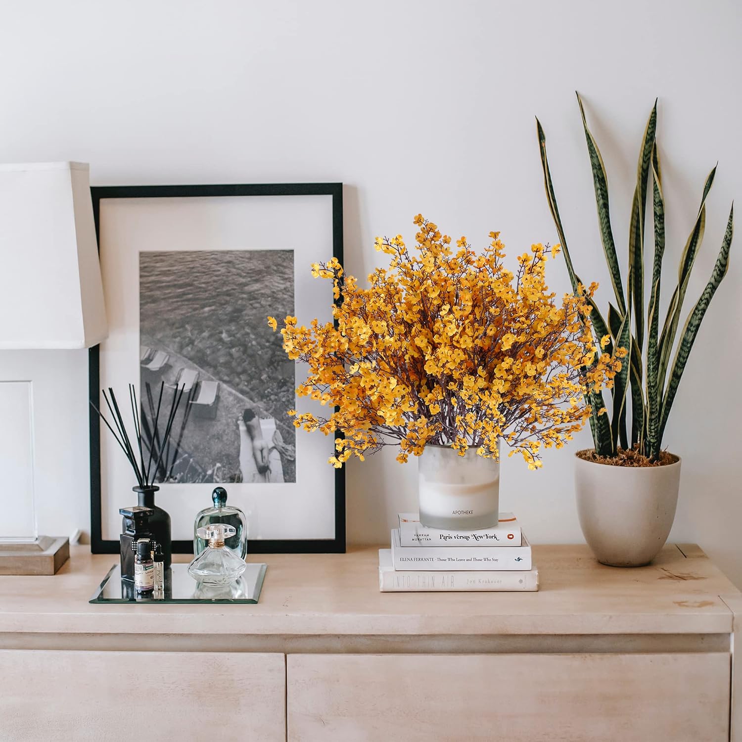 Sggvecsy 15 Pcs Babys Breath Artificial Flowers Gypsophila Bouquets Real Touch Fake Silk Flowers for Home Wedding DIY Floral Arrangement Table Centerpiece Thanksgiving Autumn Decoration (Orange)