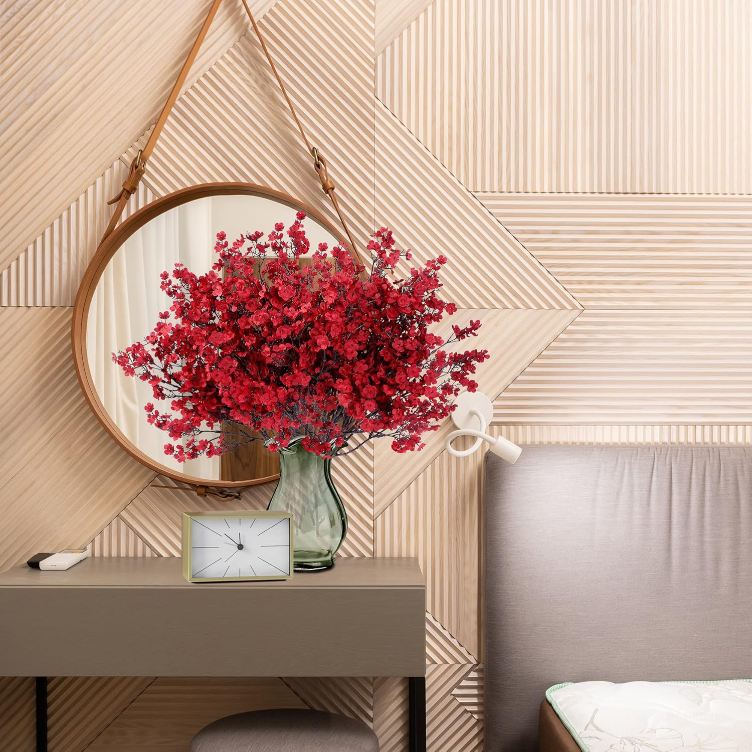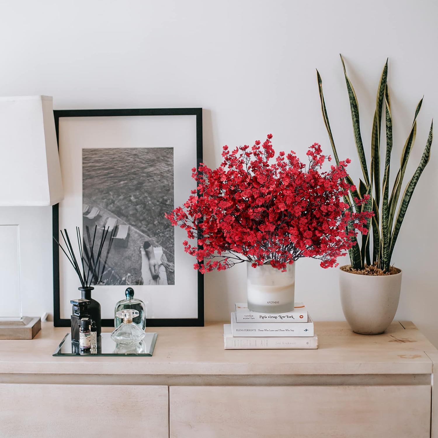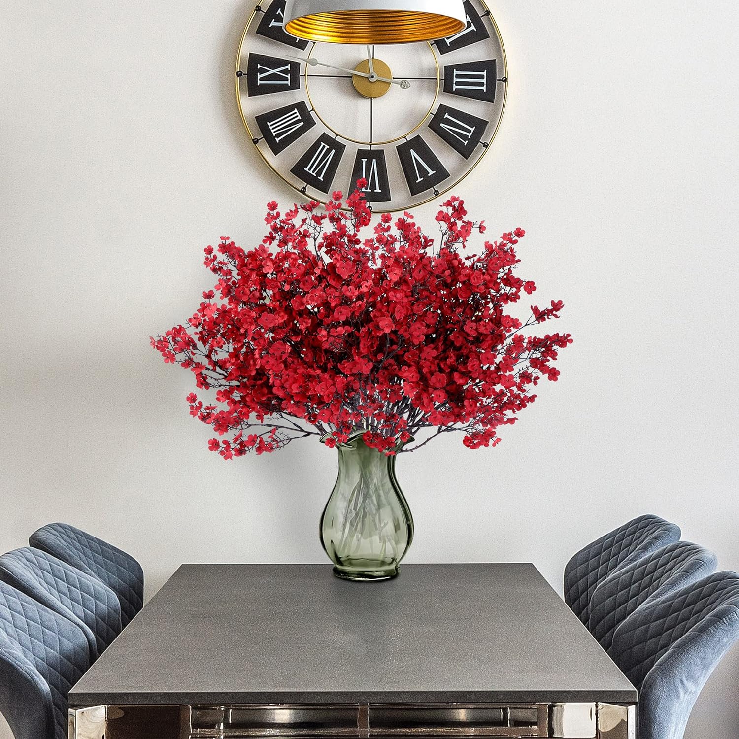 - PACKAGE & SIZE: The package has 15 red babys breath (no vase included) packed in a box, adequate enough to match many holiday ornaments and satisfy your diverse. The real touch fake silk flowers have a total length of 19in. Each piece has 5 item parts, allows you to decorate your space easily.
