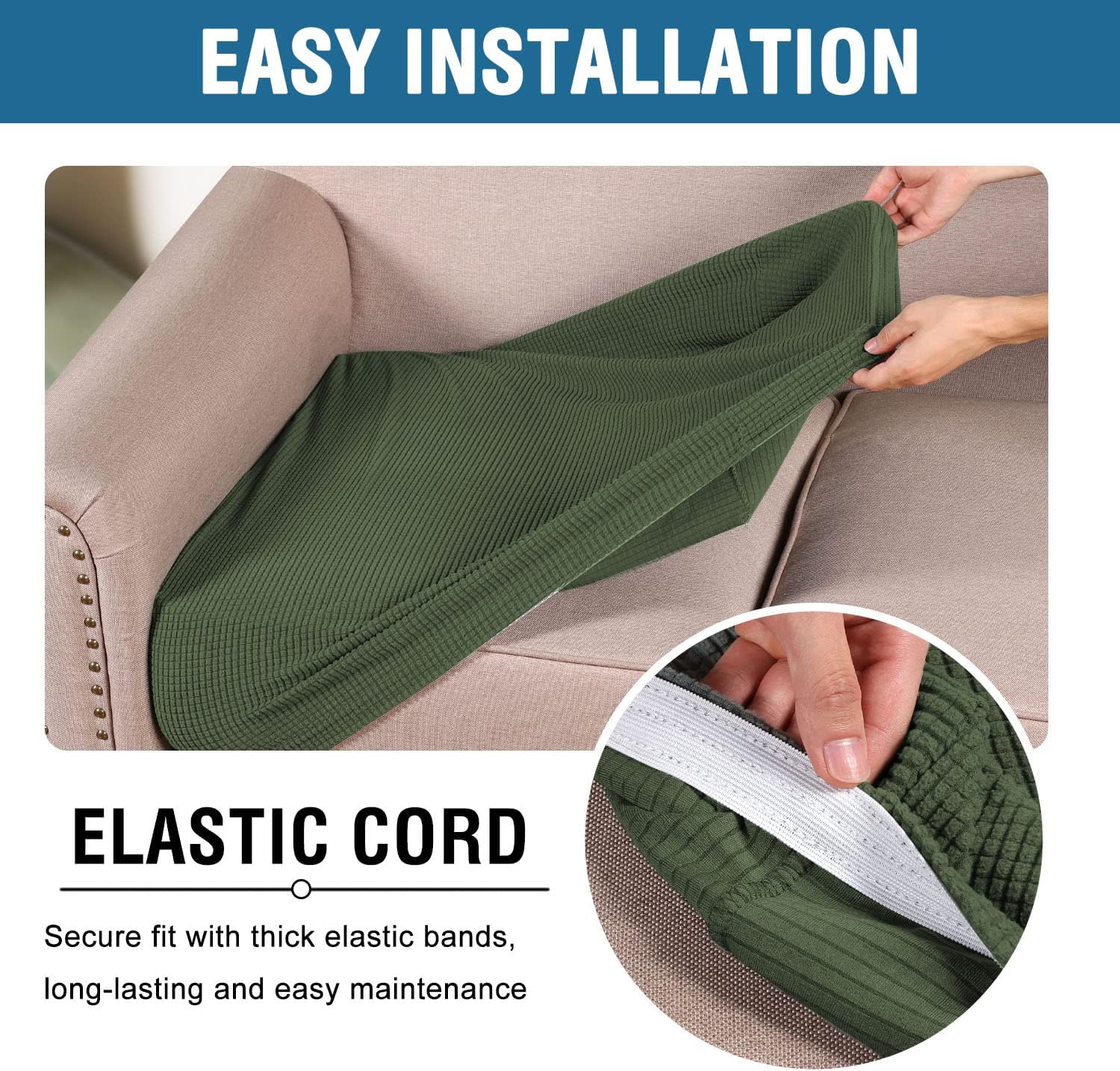 H.VERSAILTEX Super Stretch Individual Seat Cushion Covers Sofa Covers Couch Cushion Covers Slipcover Sets Thick Jacquard Textured Twill Fabric (2 Piece Medium Sofa Cushion Covers, Bronze Green)