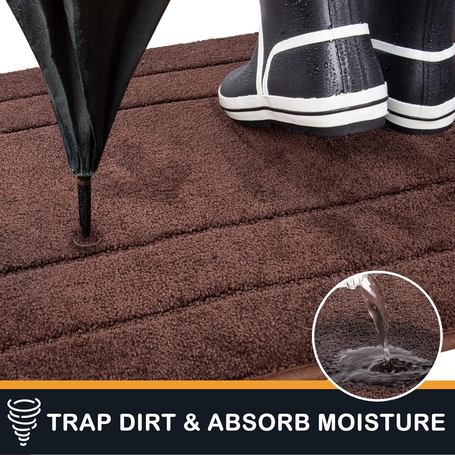 - TRAP DIRT & MOISTURE: Countless polyester fibers can effectively catch water and dirt off the bottom of shoes. Our dirt trapping doormat can keep indoor areas of your home or business clean, dry and safe, especially for the rainy, snowy, or muddy weather. For the best results, use the largest indoor door mats you have space for.