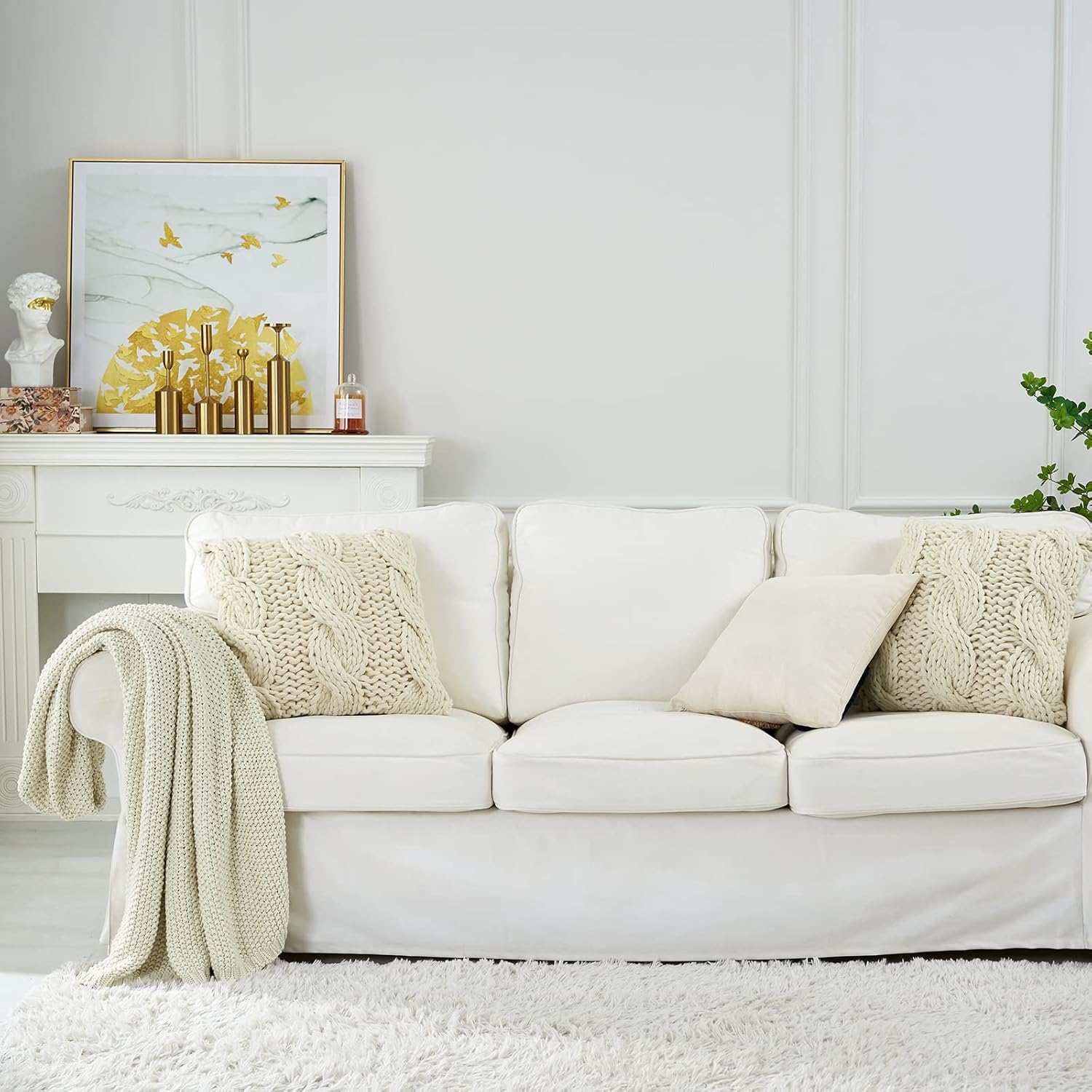 - MODERN + CLASSIC: Woven into a luxurious chunky knit, 100% natural cotton yarn fibers in a cream shade of light beige support a neutral finish that complements farmhouse chic home décor, shabby chic home décor & more.