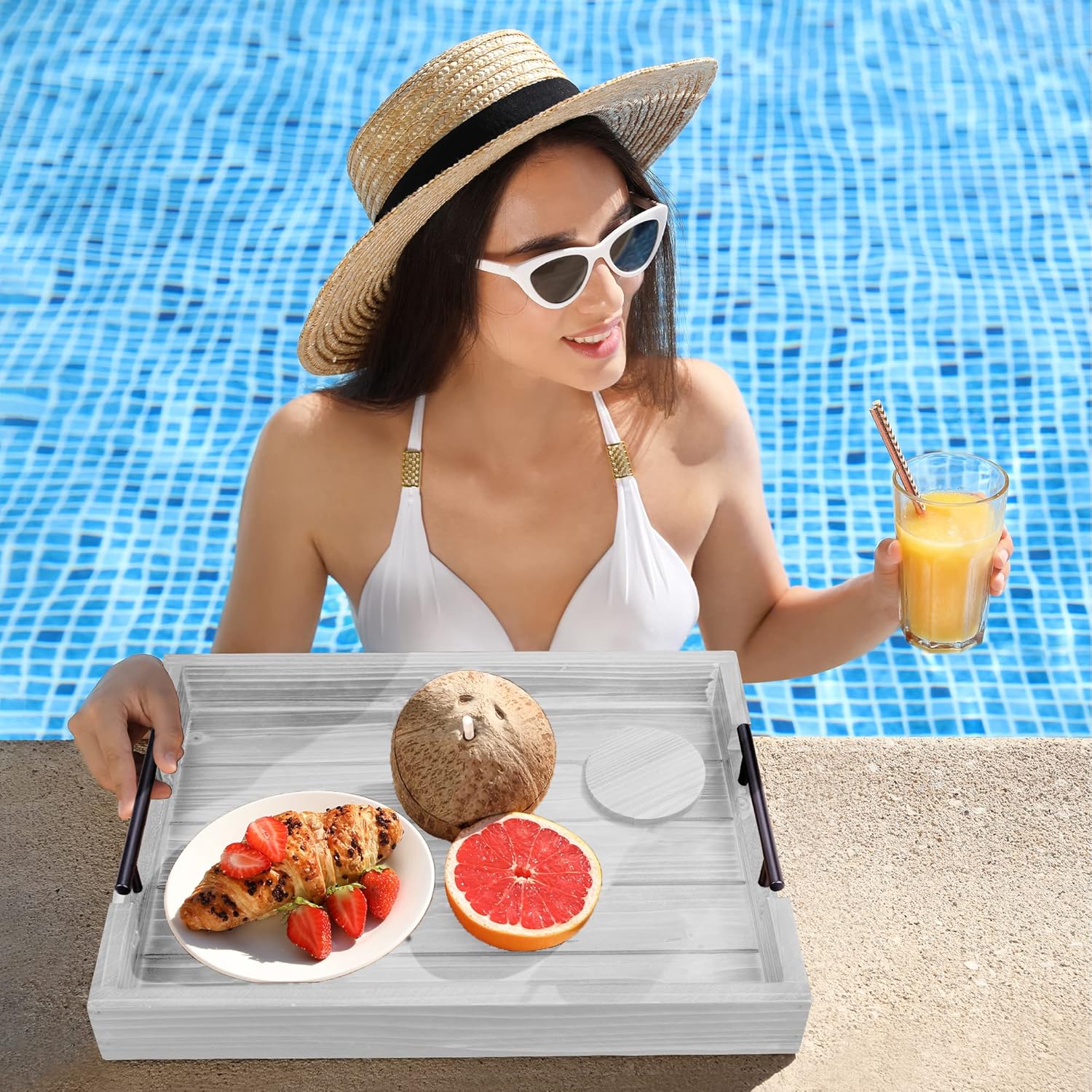 Ottoman Tray | Coffee Table Tray Decorative, Serving Tray with Handles - 17x13 Inch Wood Tray for Coffee Table Tray - with 4 Wooden Coasters -Tray for Ottoman, Breakfast