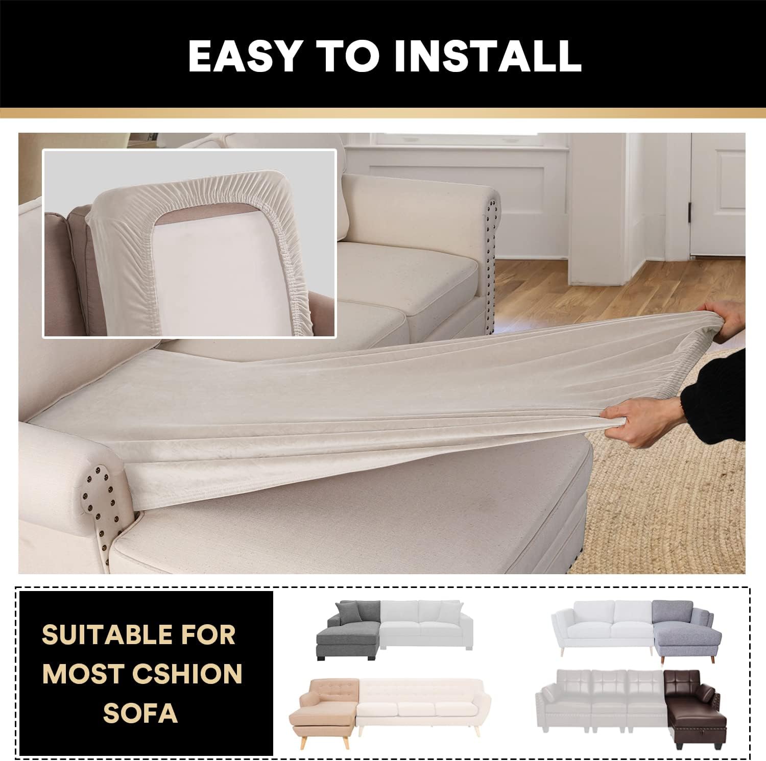 PrinceDeco Sectional Couch Covers Velvet Couch Cover for Dogs Washable L Shaped Couch Cover 1 Piece Individual Sectional Couch Covers with Elastic Bottom(Chaise Lounge,Ivory)