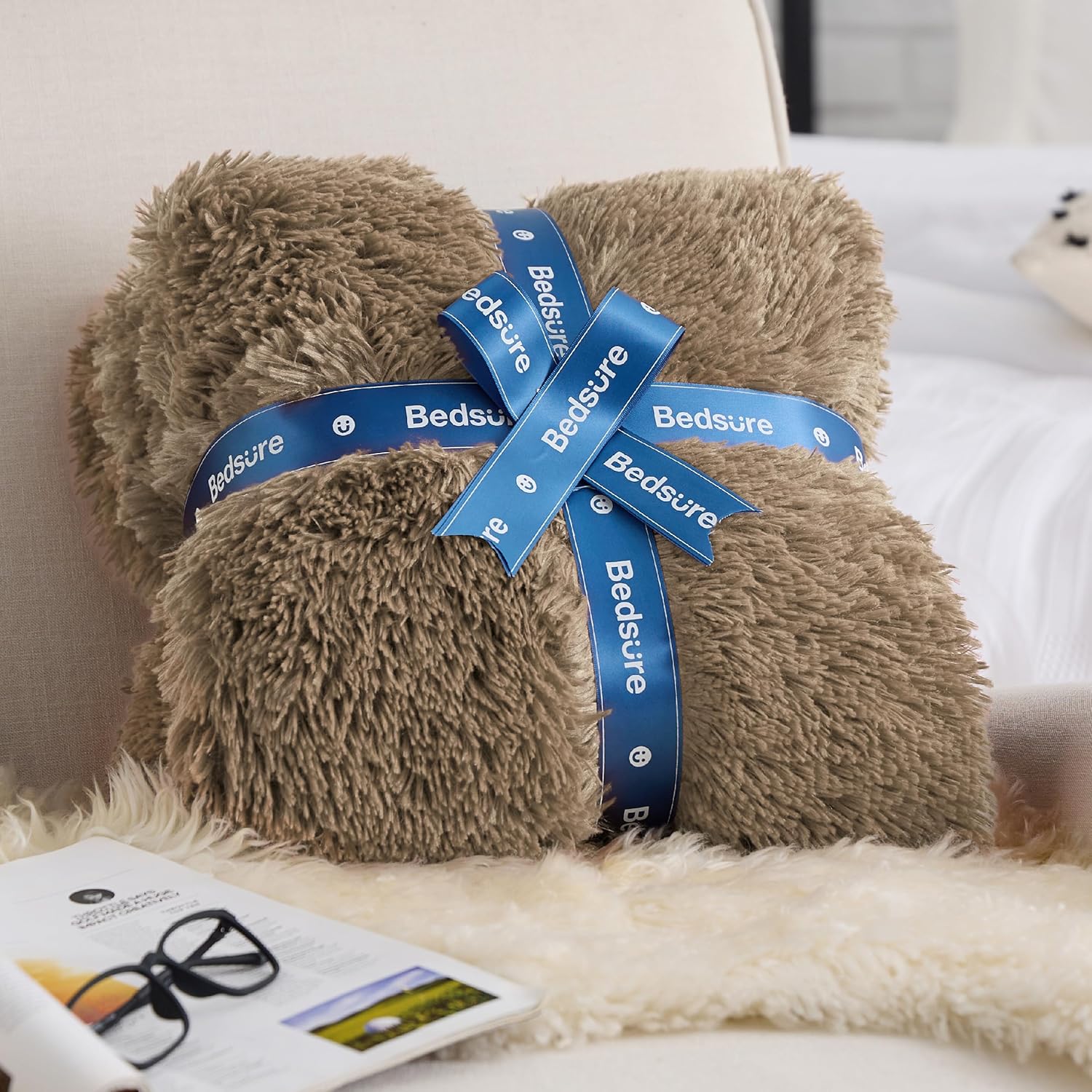 Bedsure GentleSoft Fluffy Light Chocolate Brown Throw Blanket, Brown Decor Cozy Gifts for Women Men, Soft Fuzzy Sherpa Fleece Plush Thick Warm Furry Faux Fur Throw Blanket for Couch, Bed, 50x60