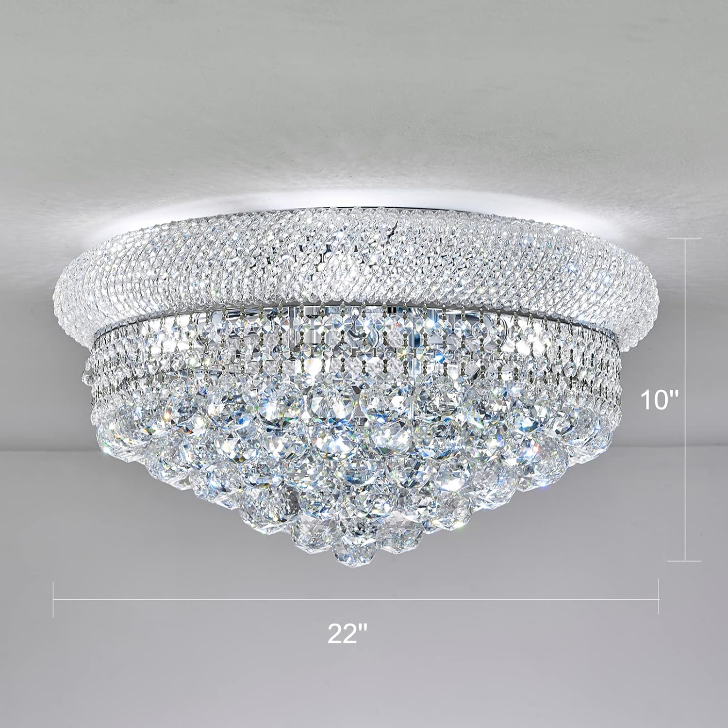 - FIXTURE DIMENSIONS:The dimension of Crystal Chandelier is Height 11 inch, Width 22 inch.