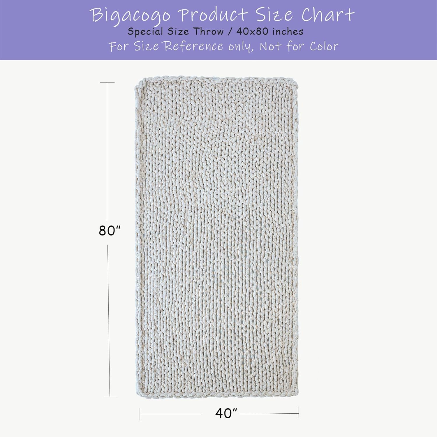 Bigacogo Chunky Knit Throw Blanket for Couch, 40x80 inches, 100% Hand Knitted with Thick Jumbo Chenille Yarn, Cozy Soft Large Rope Knot Cable Crochet Blankets for Sofa Bed Living Room, White