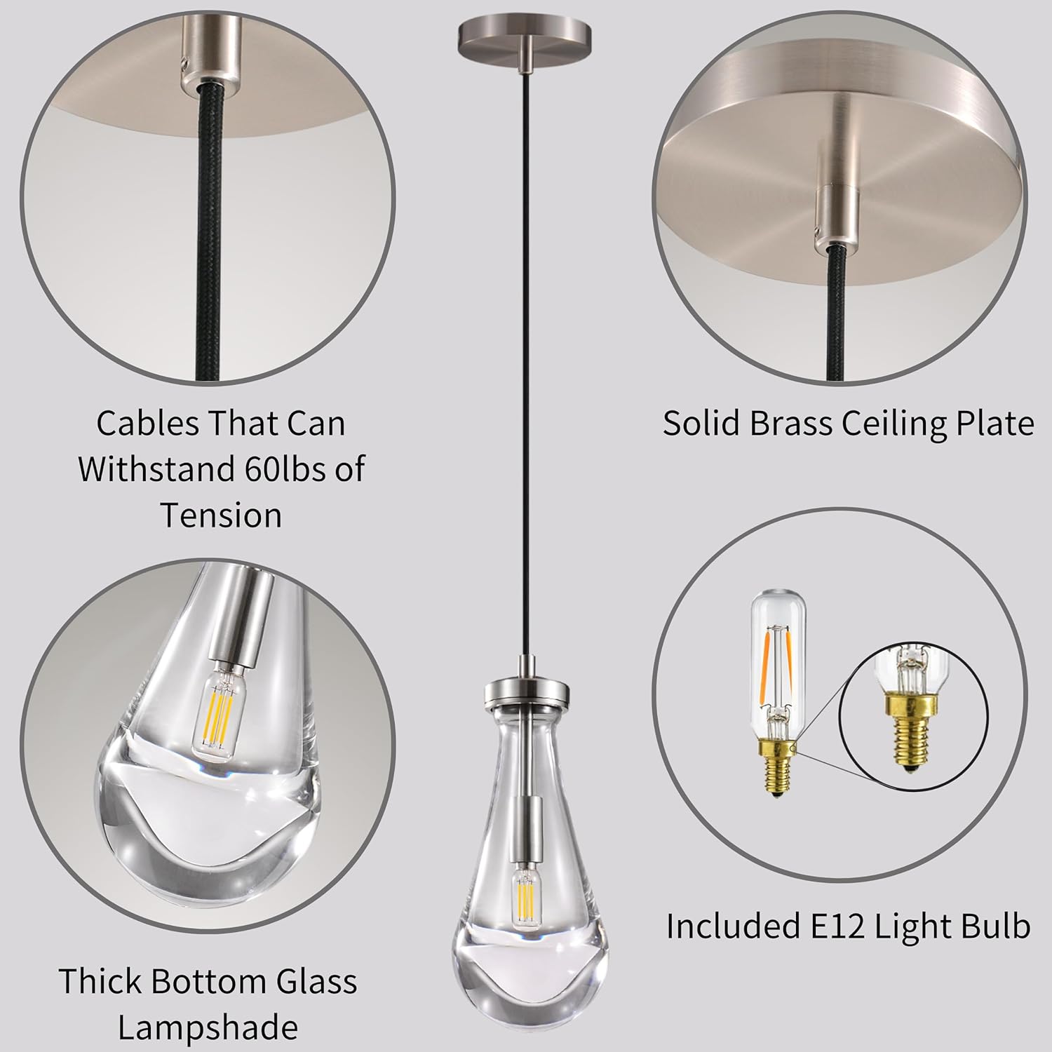 - 【Hand-blown Raindrop Pendant Light】The nickel pendant light kitchen island is suitable for all styles of decoration. The raindrop-shaped glass shade reflects a rich light effect in the light, combining the beauty of modernity and nature to enhance the premium feel of the space for you.