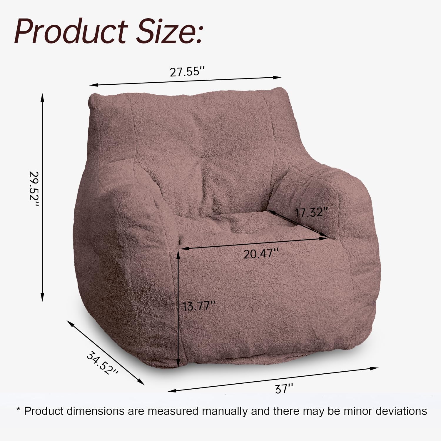 - Bean Bag Ideal Size: Measuring 37 in x 39 in x 27.56 in, our bean bags are great for all, from an adult to a child. The beanbag chair is already filled, so you don't have to refill it. After you take it out of the box, you need to leave it for about half an hour to allow the beans inside the beanbag chair to breathe freely and recover elasticity. You'll soon have a soft and comfortable beanbag sofa.