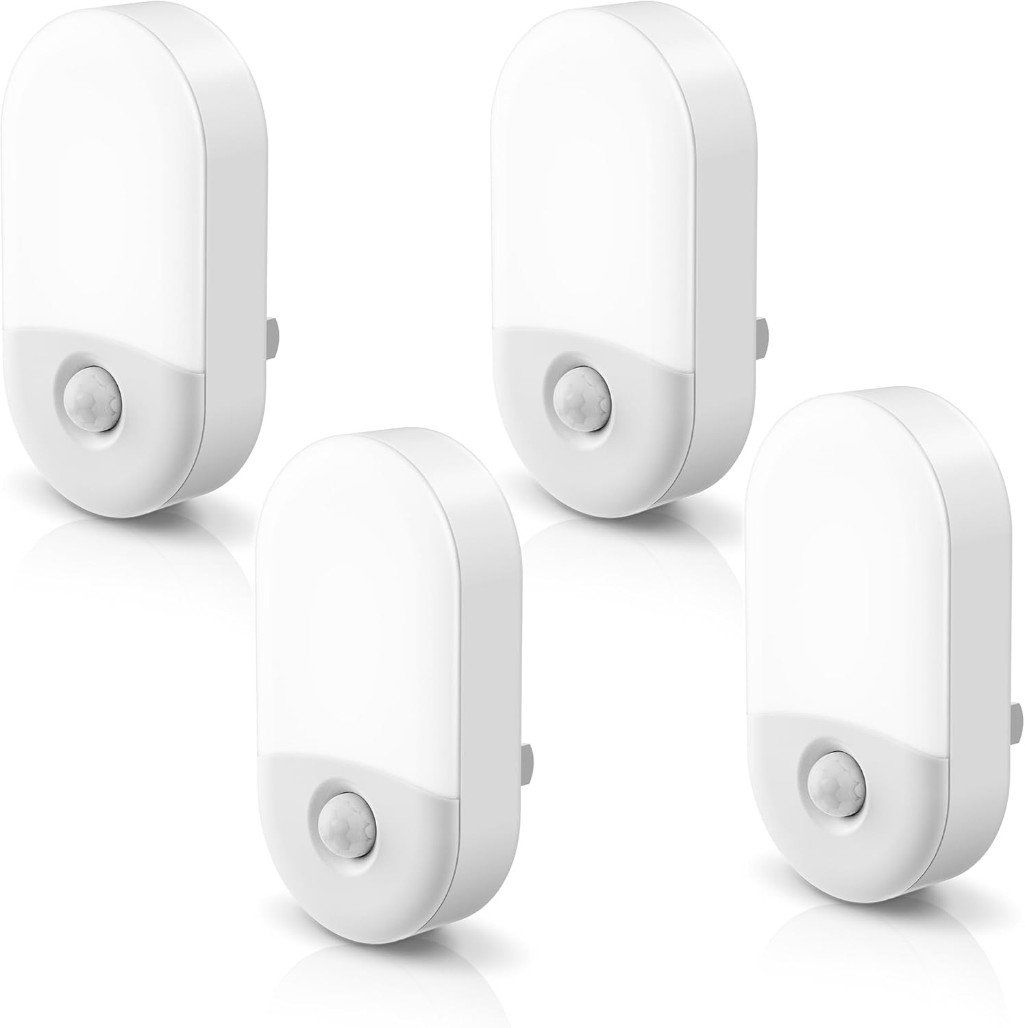 L LOHAS LED Motion Sensor Night Light Plug in, Motion Activated Night Light, 5000K Daylight White, Night Light Plug Into Wall, Adjustable Brightness, Night Light for Bathroom, Kids, Hallway, 4 Pack