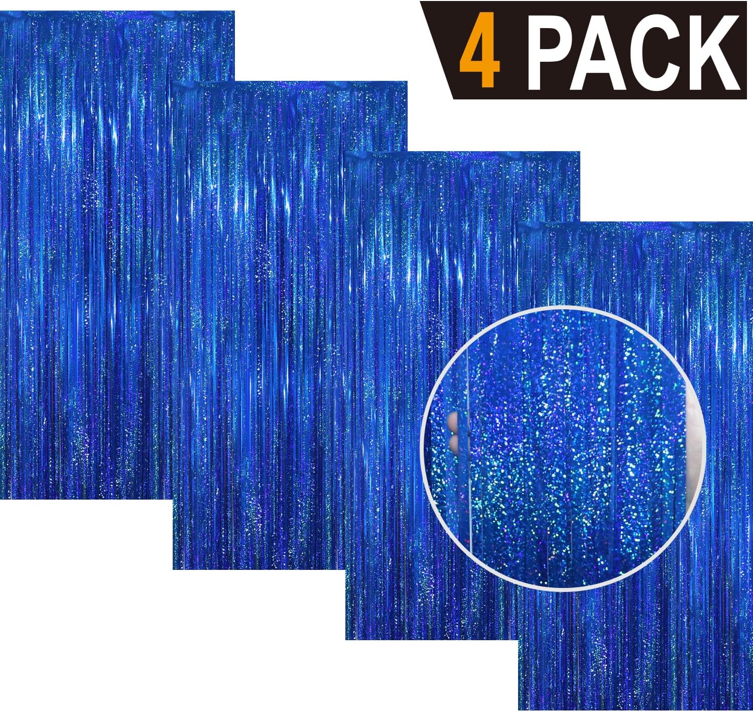 GOER 3.2 ft x 8.2 ft Metallic Tinsel Foil Fringe Curtains Party Photo Backdrop Party Streamers for Birthday,Graduation,New Year Eve Decorations Wedding Decor(4 Packs,Shiny Blue)