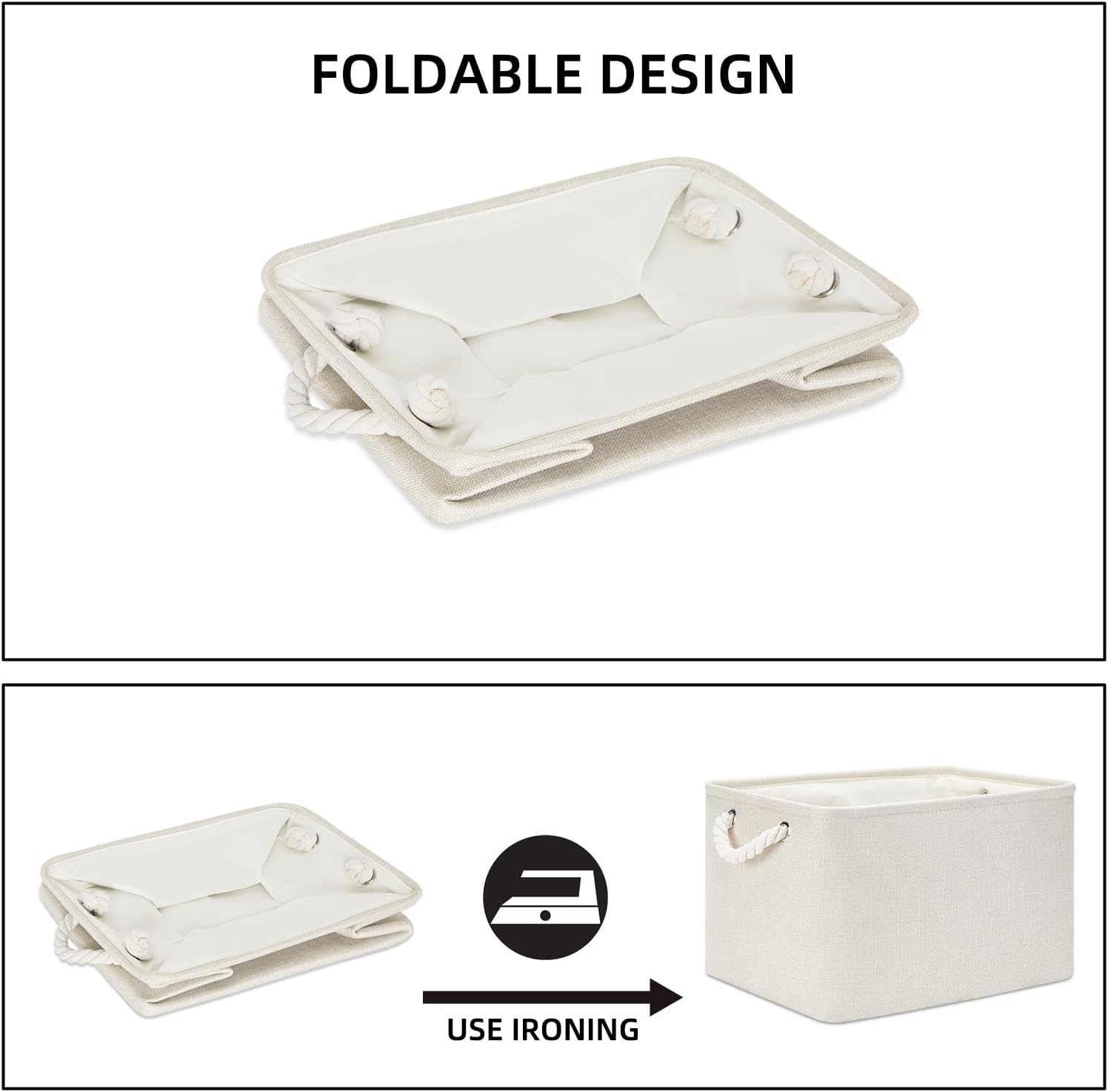 Bidtakay Baskets Collapsible Large Toy Storage Baskets for Organizing Set of 3 Closet Organizer Linen Cream Storage Bins 15 X 11 X 9.5 Inch Shelf Organizer Bins for Nursery Storage (Light Beige)
