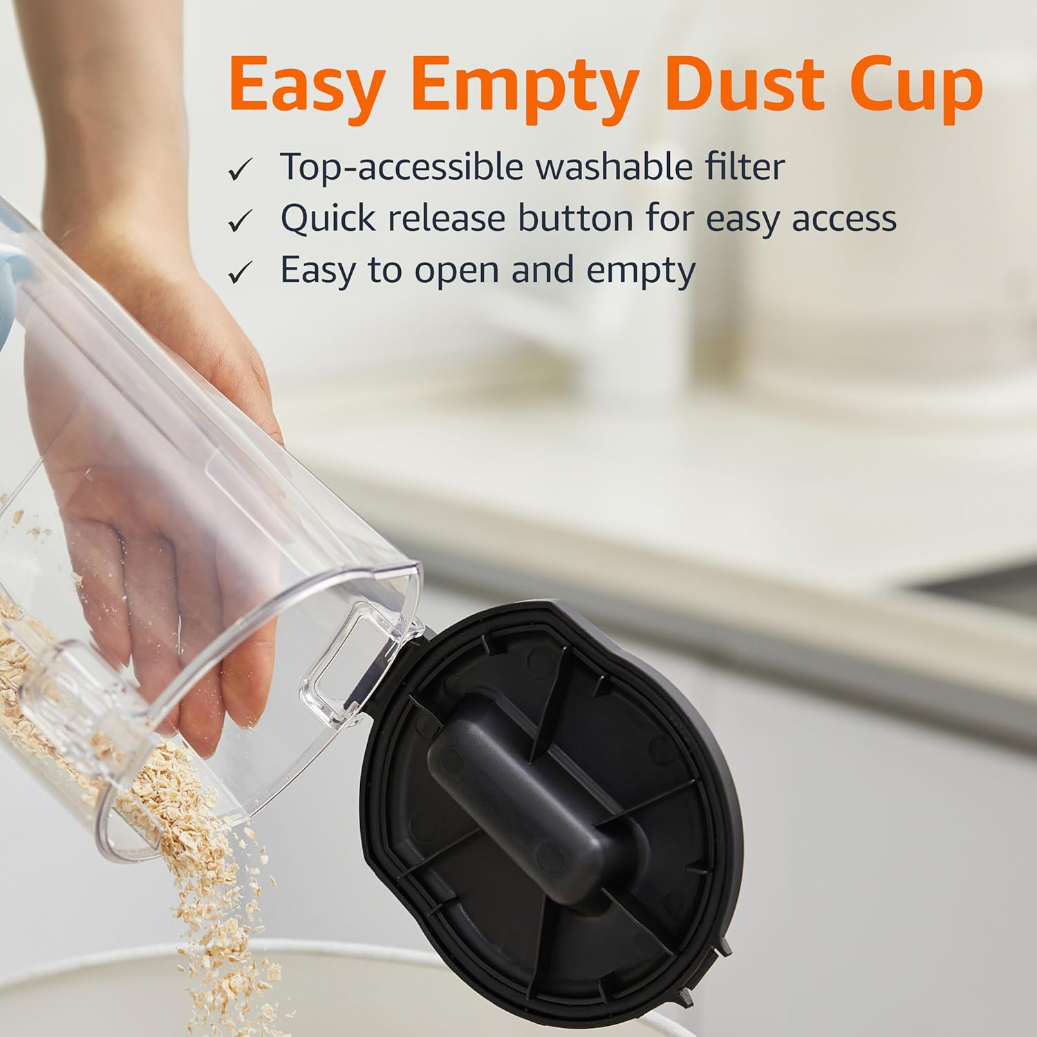- LARGE CAPACITY DUST CUP: These vacuum cleaners for carpets and floors have a 1.7L dust cup that allows for longer cleaning without frequent emptying, and features a quick-release button for easy disposal of collected debris