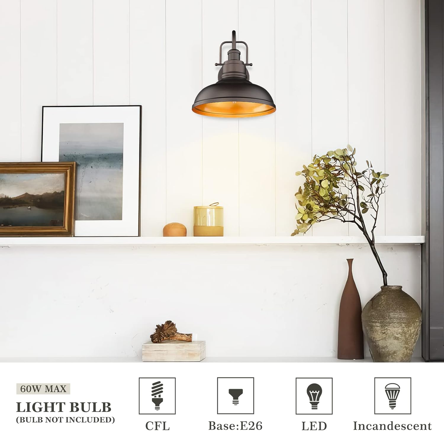 - 【INDUSTRIAL & MODERN DESIGN】: Featuring a metal dome shade and elegant gooseneck arm design, these farmhouse wall sconces are made of sturdy metal construction in oil rubbed bronze finish, perfectly meeting your farmhouse decoration expectations.