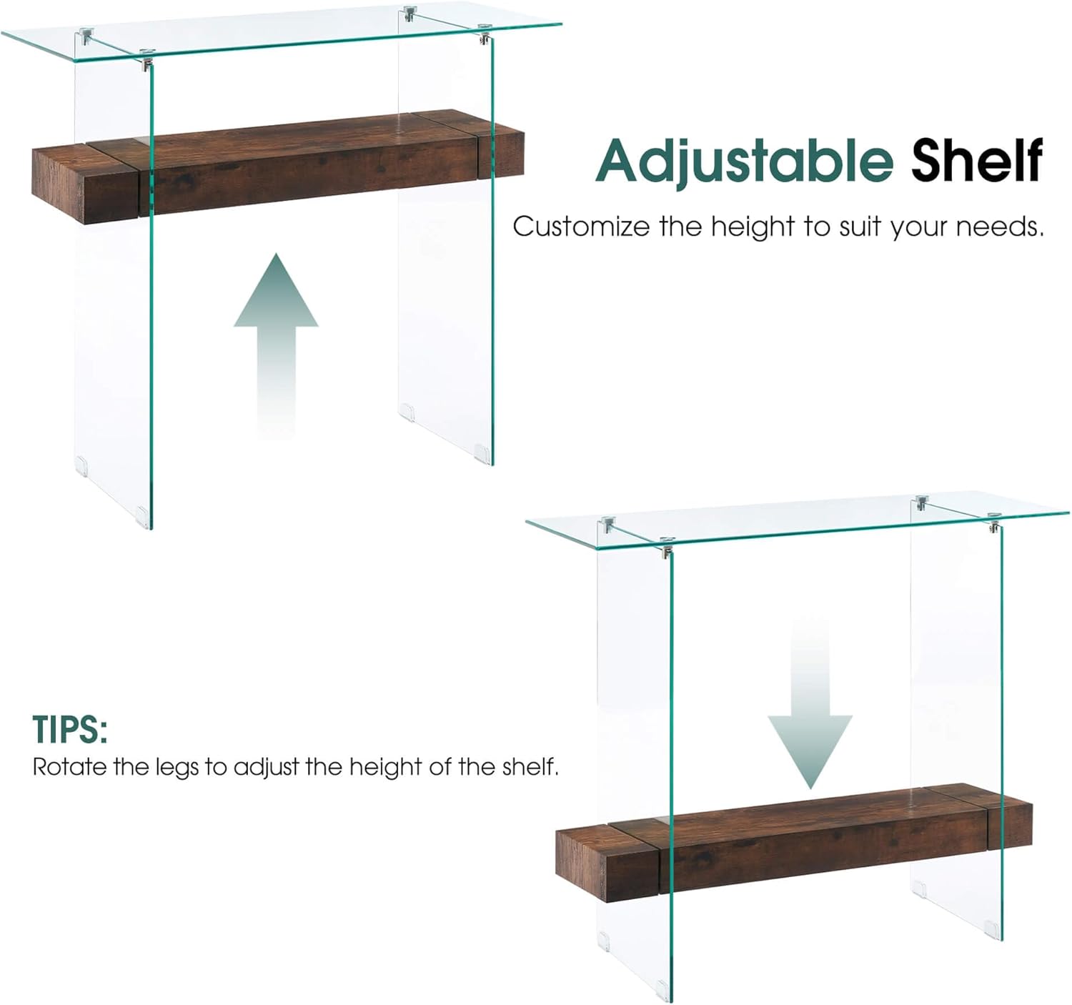- 2-Tier Storage Entryway Table: Featuring two open shelves, this console table provides ample storage and display space. Its versatile design makes it a functional addition to your living room, entryway, or hallway, helping keep your space organized