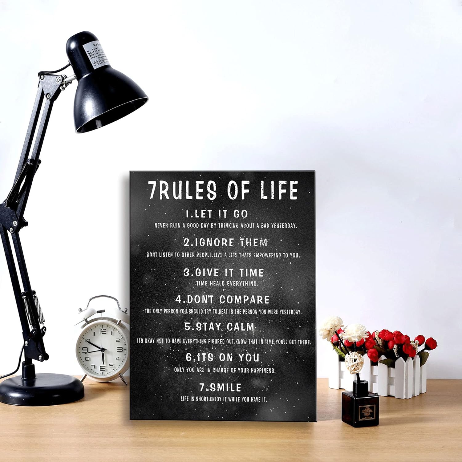 7 Rules of Life Wall Art Motivational Inspirational Poster Printed on Canvas Wall Decor for Living Room or Office Size11.5 x 15 Inch Framed Canvas Prints For Bedroom or Home Art Decoration Positive