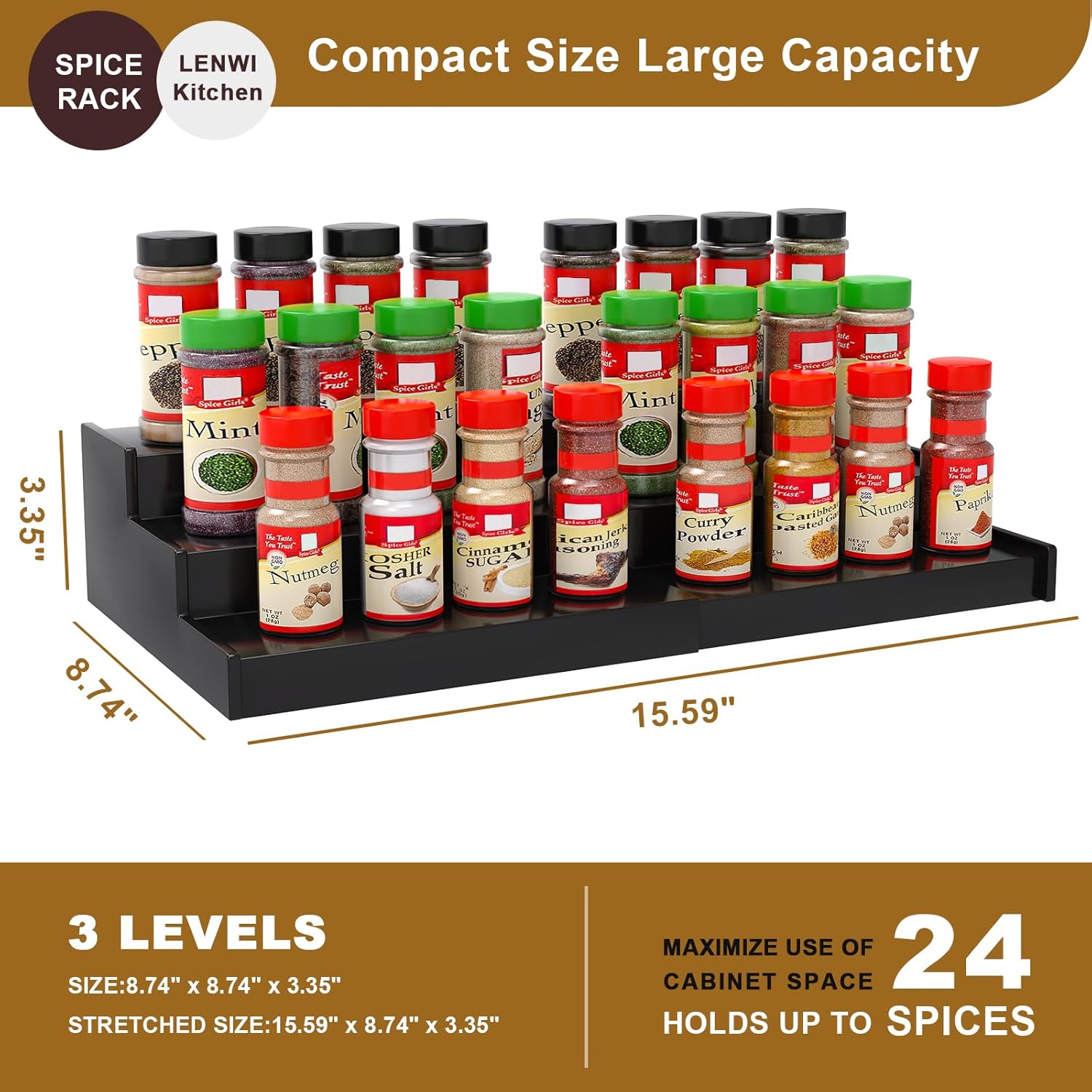 - 【Extendable Design】The spice rack organizer is retractable and has a width range of 8.74" - 15.59". The width can be adjusted according to your needs, making efficient use of your storage space. Wonderful storage solution for spice jars
