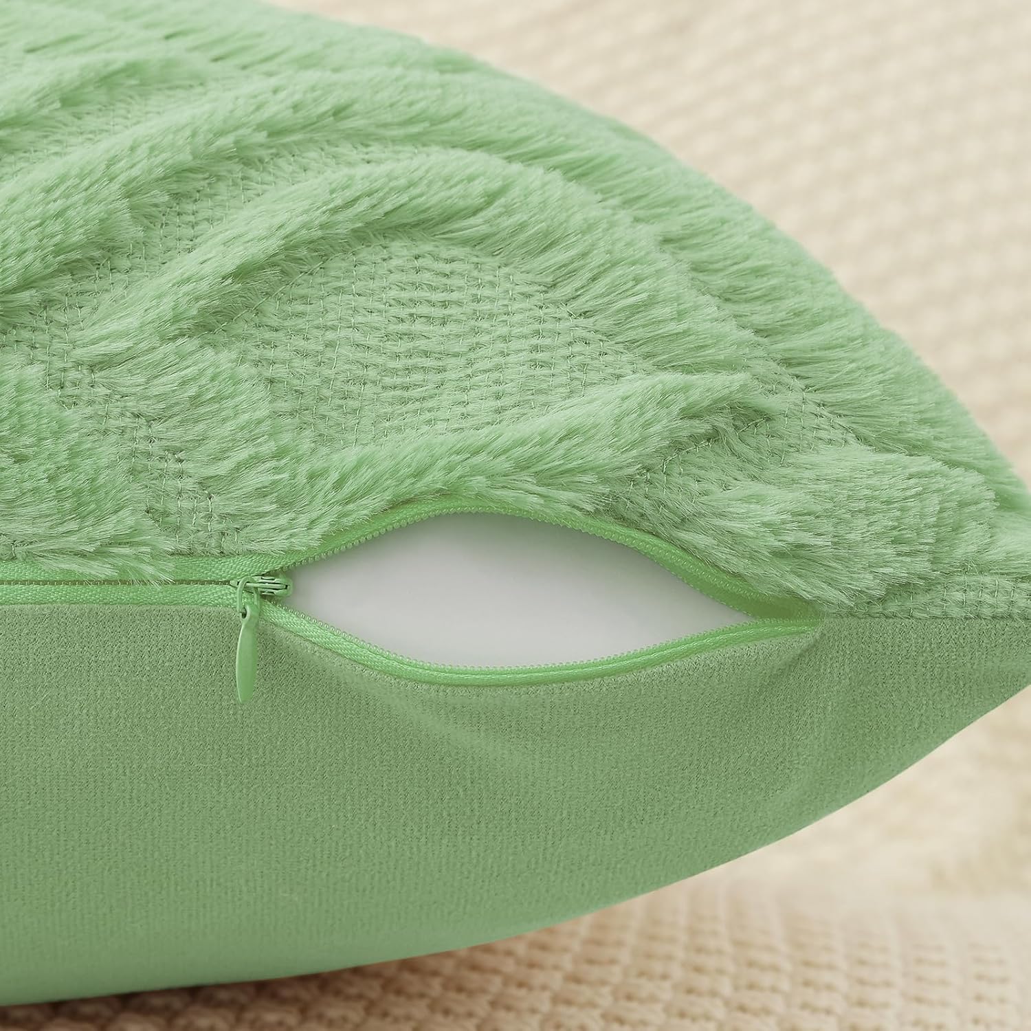 decorUhome Throw Pillow Covers 22x22 Inch Set of 2, Soft Plush Decorative Faux Fur Sage Green Solid Couch Pillow Covers, Accent Farmhouse Neutral Square Euro Pillow Cases for Sofa Bed Living Room