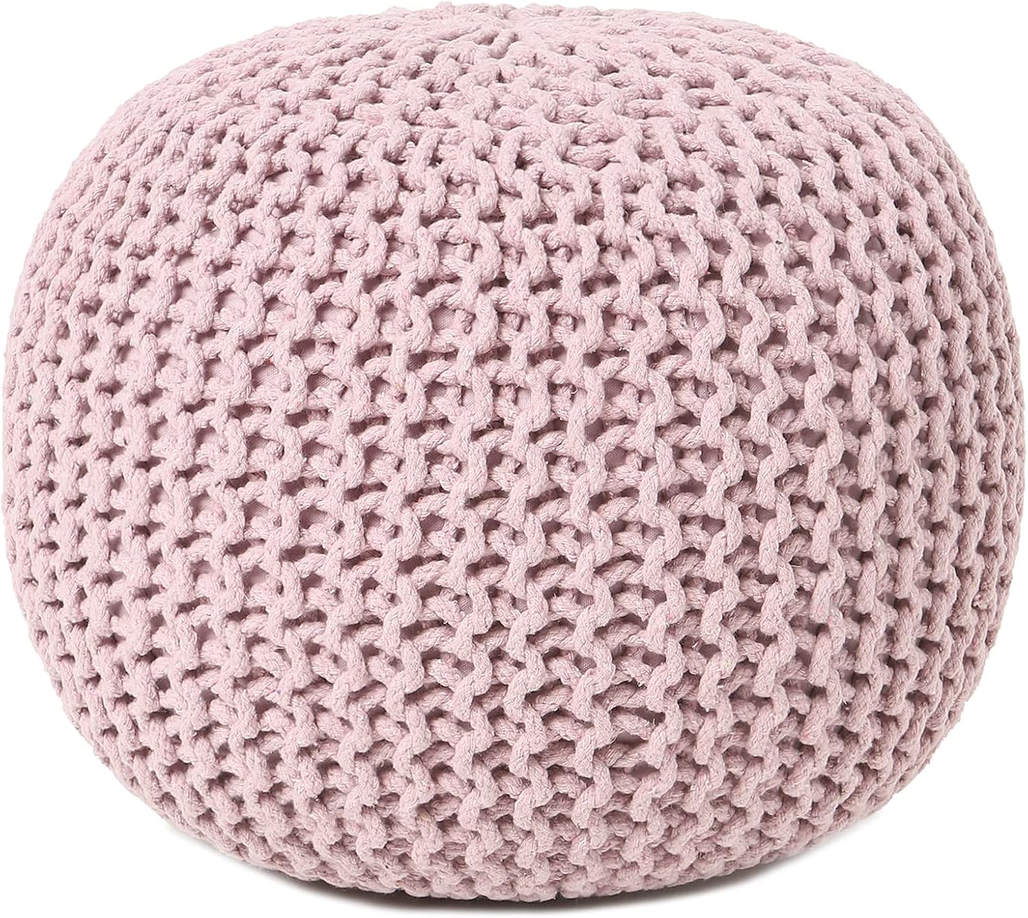 REDEARTH Round Pouf Ottoman - Hand Knitted Boho Poof Home Décor Pouffe Circular Footrest for Living Room - Bedroom - Lounge - 100% Cotton (19.5"x19.5"x14") - Pale Pink