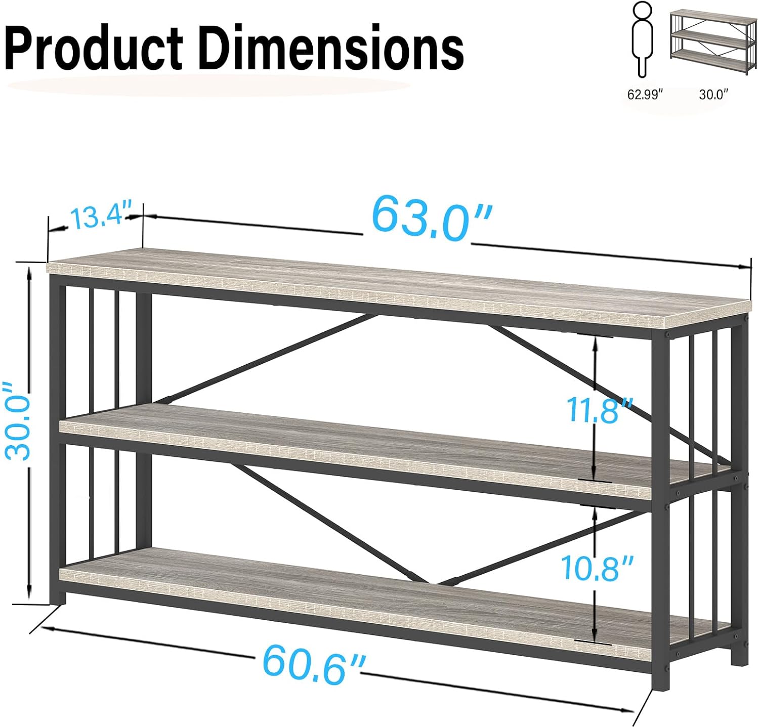 LVB Long Console Table with Storage, Farmhouse Rustic Skinny Entryway Table, Modern Wood Metal Hallway Sofa Table with Shelf, Industrial Narrow Couch Entry Table for Foyer Living Room, Light Grey, 63