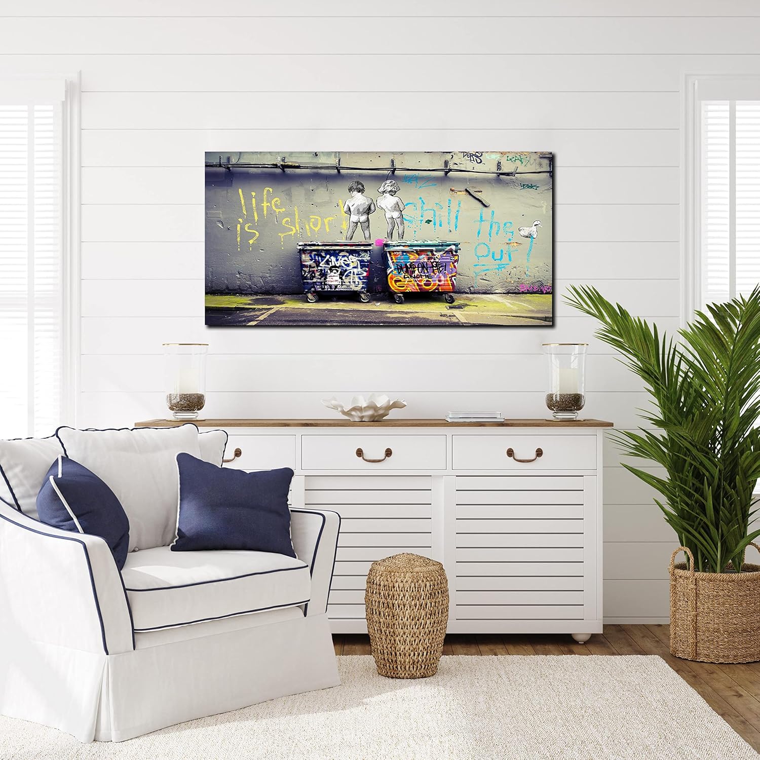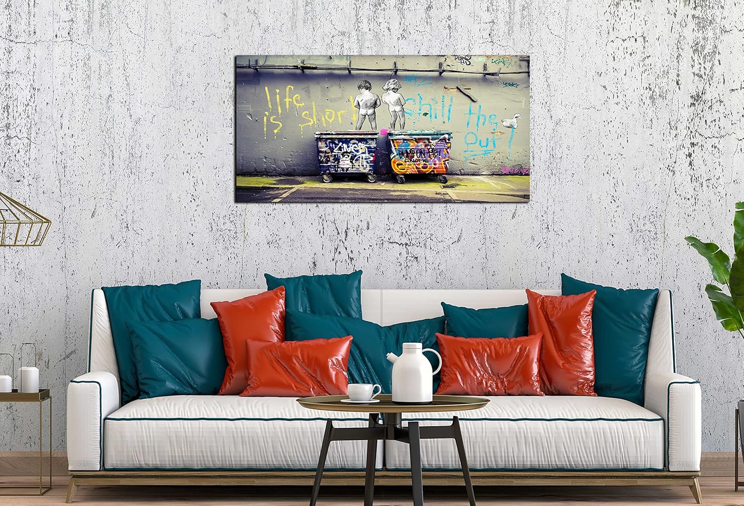 - 【HI-Q MATERIAL】 High quality, HD prints on premium canvas, waterproof canvas, UV resistant, fading resistant indoor. Banksy street art graffiti canvas wall decor