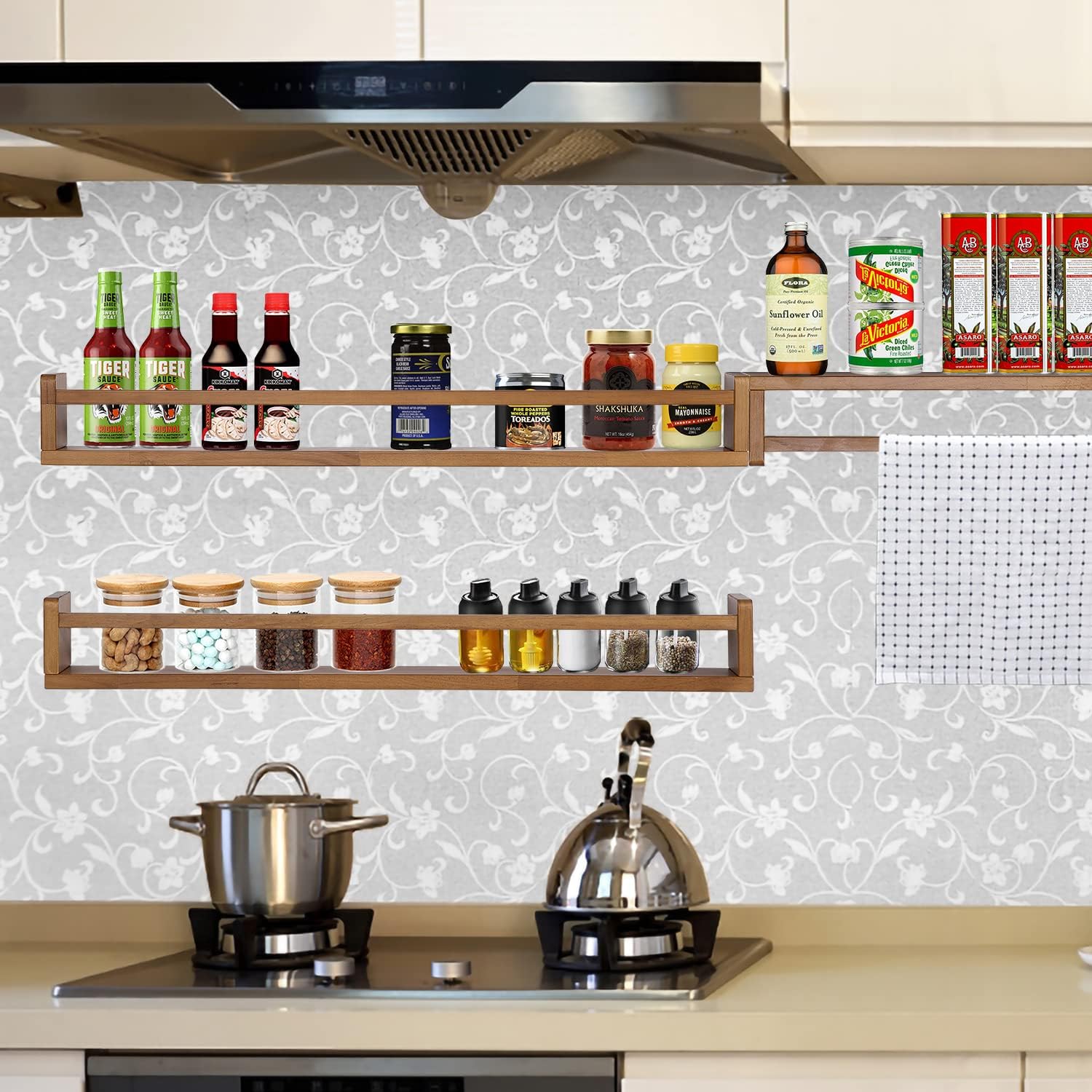 - Space-Saving Wall Shelves: Floating shelves are practical and fixed to the wall will take up less floor space while increasing storage space. You can put it in your child's bedroom as a space-saving bookshelf, or use it as a spice rack or condiment rack in the kitchen. You can also put it in the bathroom to store toiletries.