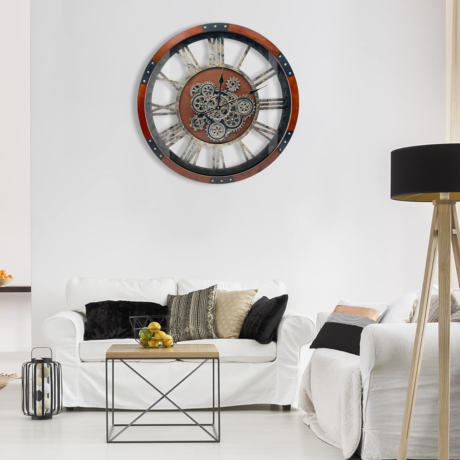 - 🕞Real Rotating Gears: The exposed gears on this large wall clock are real and rotate independently of the pointers. With a dust proof glass cover and battery powered operation, the gears rotate almost silently, providing a unique and dynamic way to experience time.