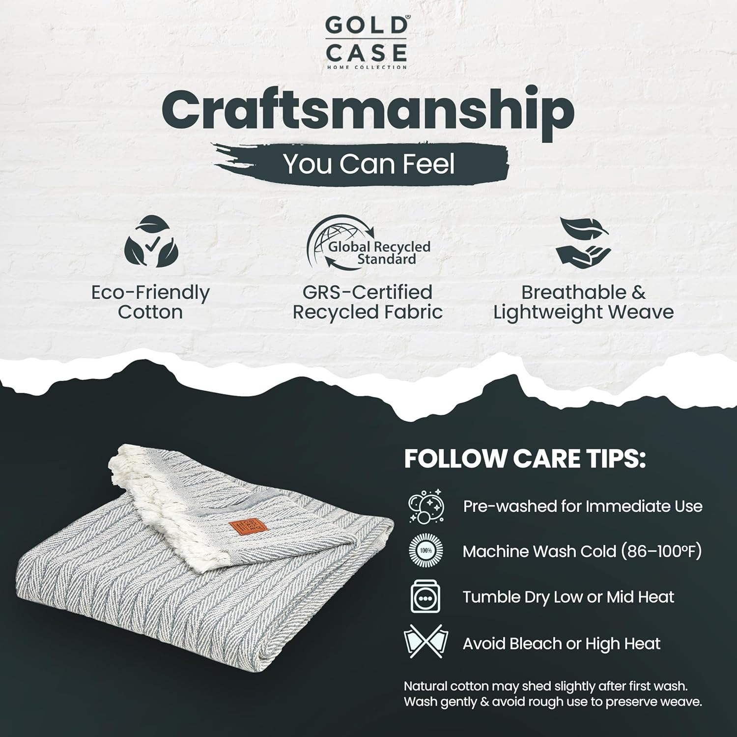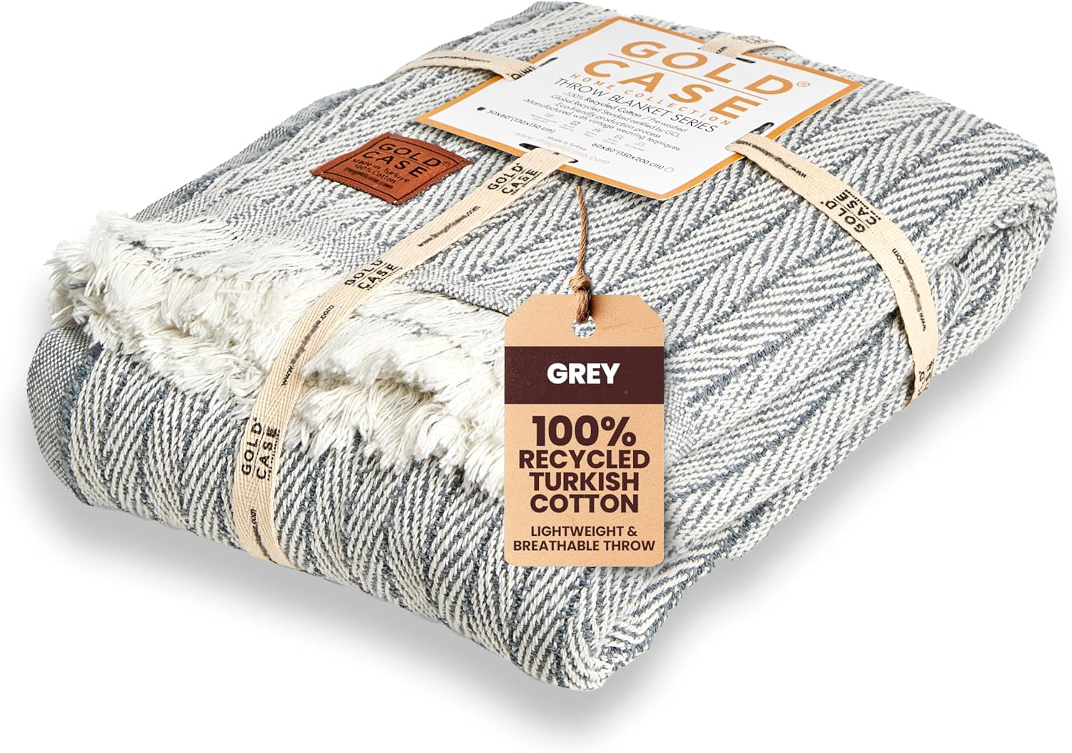 Gold Case Throw Blanket for Couch – 100% Recycled Turkish Cotton Blankets & Throws – Elegant Decorative Throw Blankets for Living Room Sofa – Woven Throws for Couch – Vintage Grey– 60x80