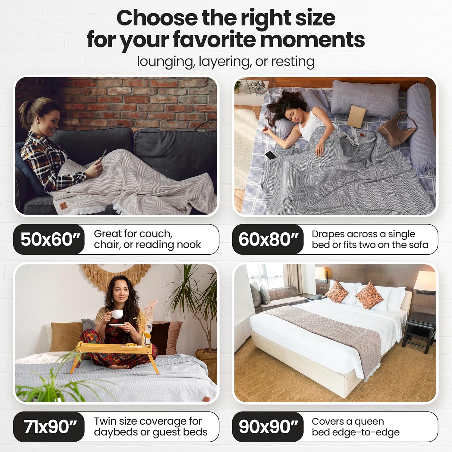 - LIGHTWEIGHT LAYERS FOR RELAXED MOMENTS: Woven from 100% recycled Turkish cotton, this breathable and cute throw blanket adds a soft, textured touch to your space; made for layering on the couch, tossing over your shoulders, or adding a laid-back look to your decor