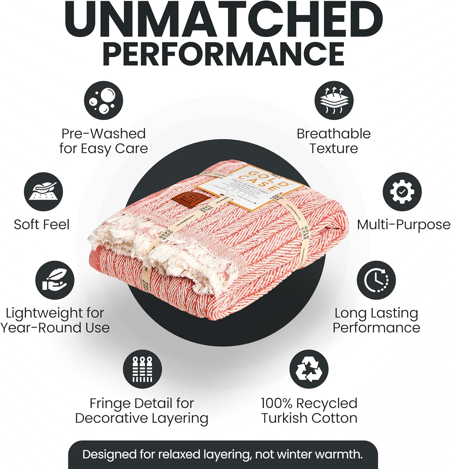 Gold Case Throw Blanket for Couch – 100% Recycled Turkish Cotton Blankets & Throws – Elegant Decorative Throw Blankets for Living Room Sofa – Woven Throws for Couch – Vintage Orange – 60x80