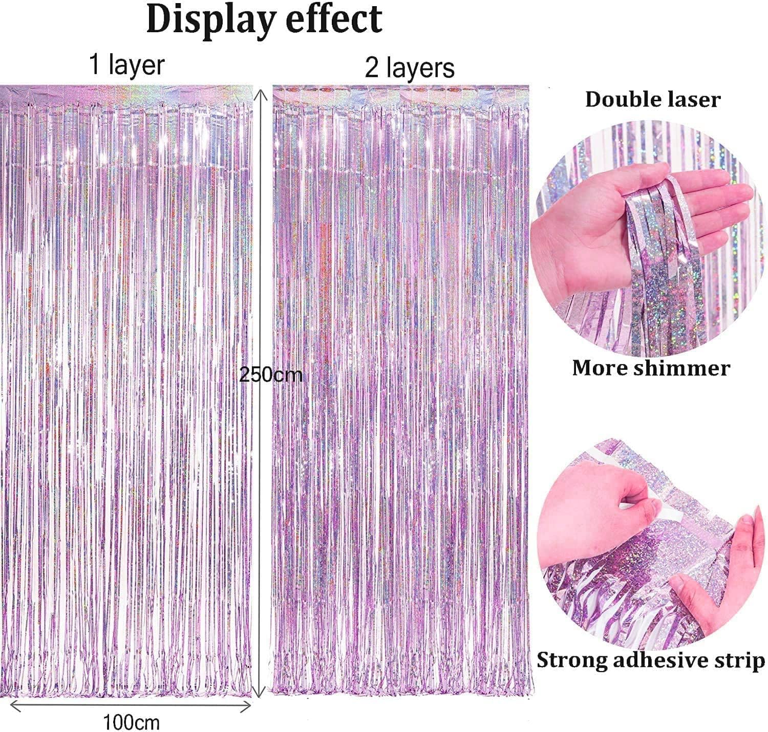 - The metallic tinsel foil fringe curtains are made by aluminium foil with laser spangle, more shining and beautiful, high quality & non-toxic and non-fading.