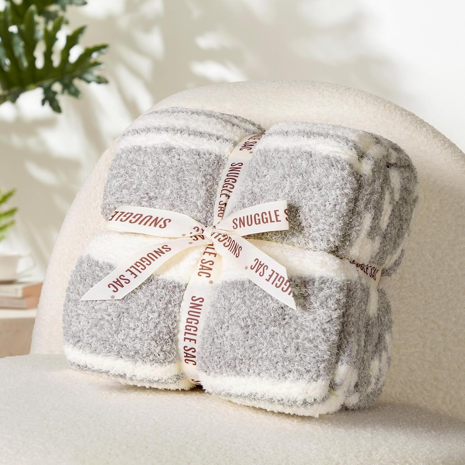 Snuggle Sac Grey Stripe Knitted Throw Blanket for Couch, Reversible Super Soft Warm Blankets Cozy Knit Fuzzy Plush Lightweight Throws for Sofa, Bed, Stripe Grey, 50 x 60 inches