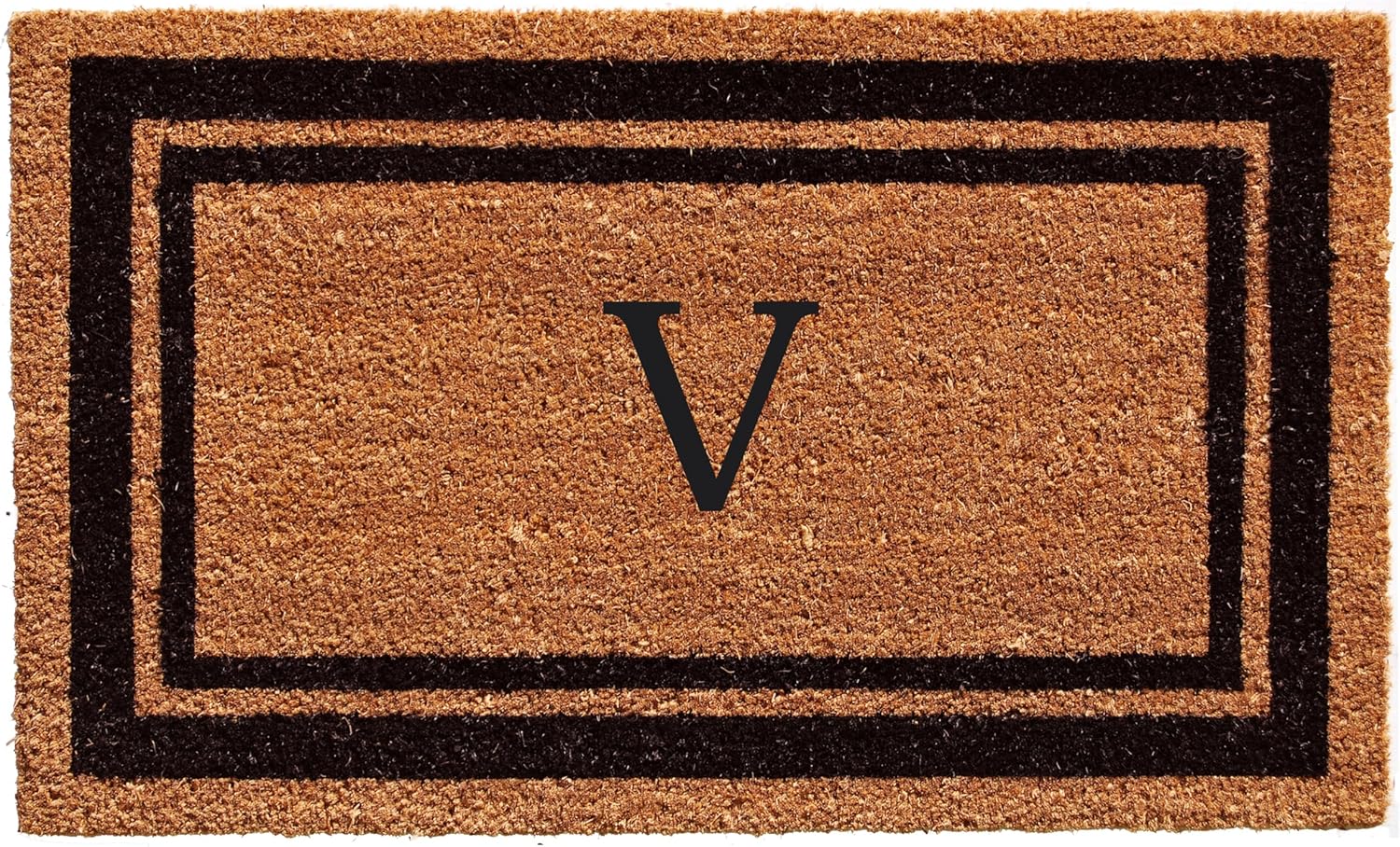 Calloway Mills 152963672V Black Border 36" x 72" Monogram Doormat Letter (V)