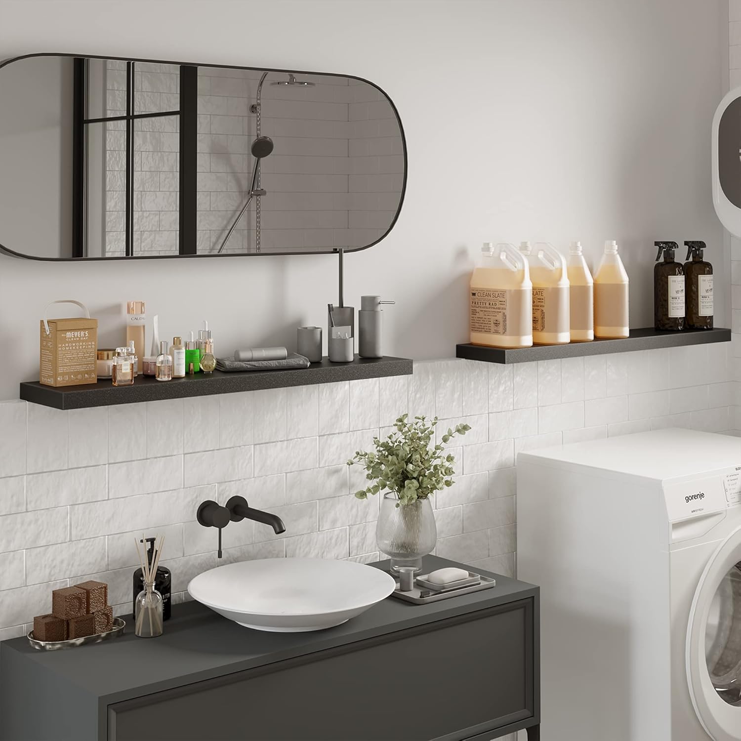 - Versatile and stylish: BAMEOS floating shelves for wall are perfect for displaying decorative items, picture frames, and books in your living room or as bathroom shelves to store toiletries and towels
