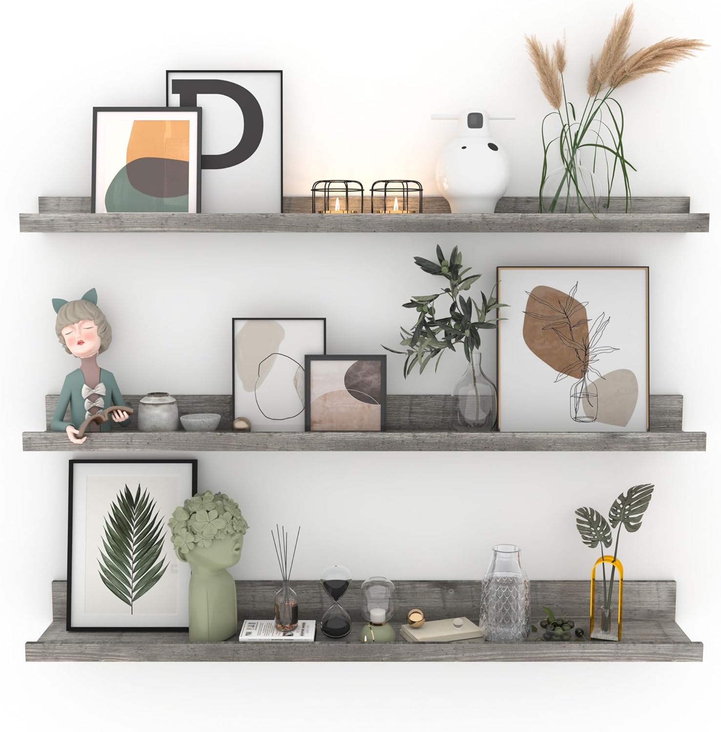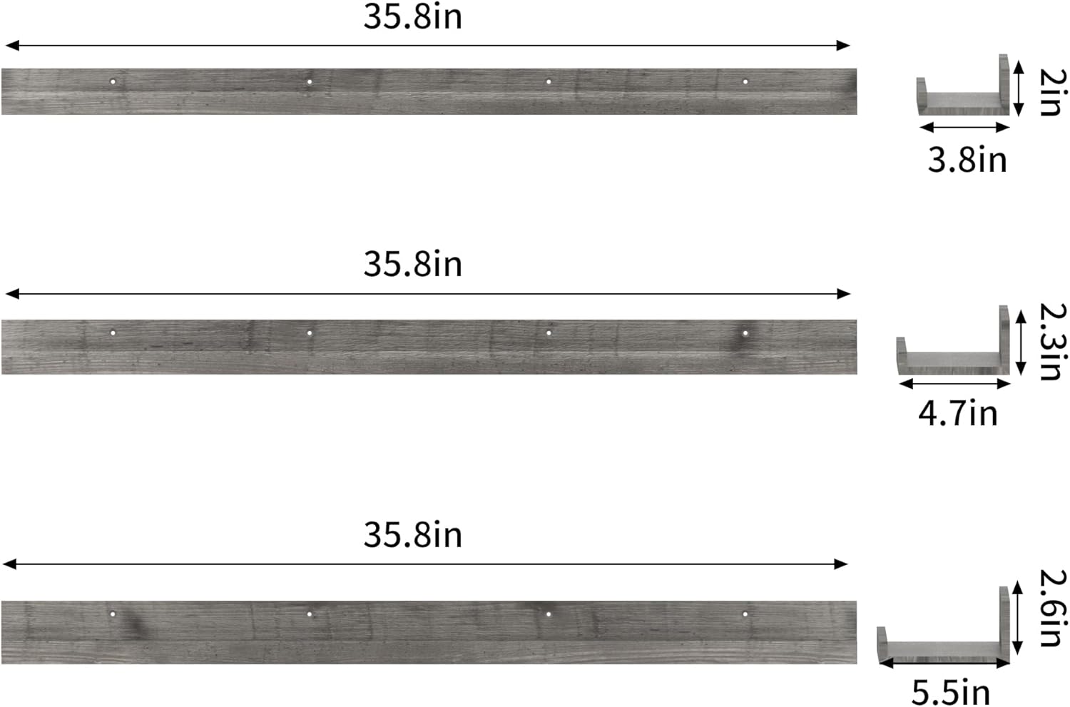 Giftgarden 36 Inch Grey Floating Shelves for Wall Mount, Gray Wood Wall Shelf Ledge for Bathroom Bedroom Living Room Kitchen Storage, Set of 3 Different Sizes