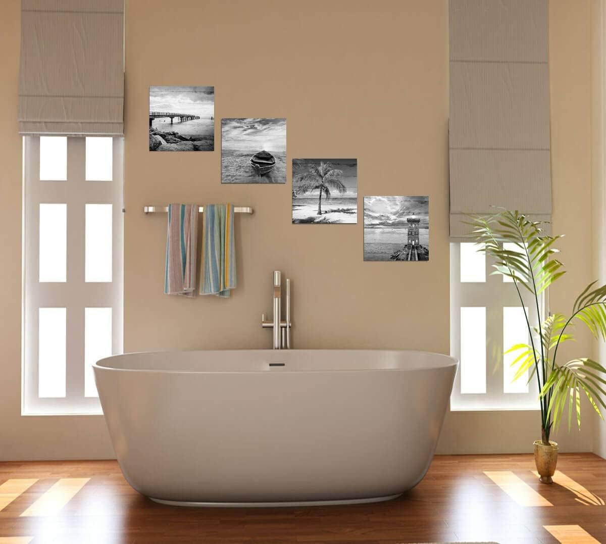 - Grey wall decor for bathroom CANVAS ART DESIGN:framed beach artwork wall decor is a great addition to your home office decor, bedroom, bathroom, living room, dorm room, dining room, glam room, beauty room, corridor, hallway wall decor. It’s a great Christmas birthday gifts idea for your parents