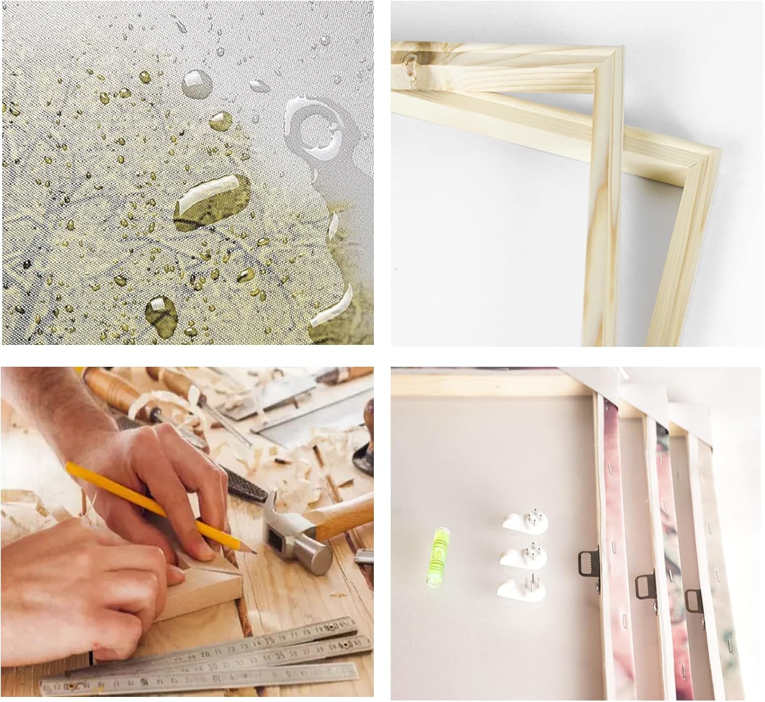 - Each panel canvas has a hook already mounted on the wooden bar trouble-free to hang out of box