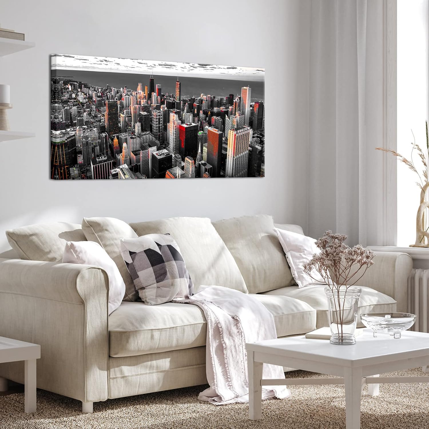 Nachic Wall Black and White Chicago Canvas Print Art Modern Chicago Downtown at Sunset Pictures Painting Modern Cityscape Giclee Artwork for Home Office Living Room Bedroom Decoration 24x48Inches