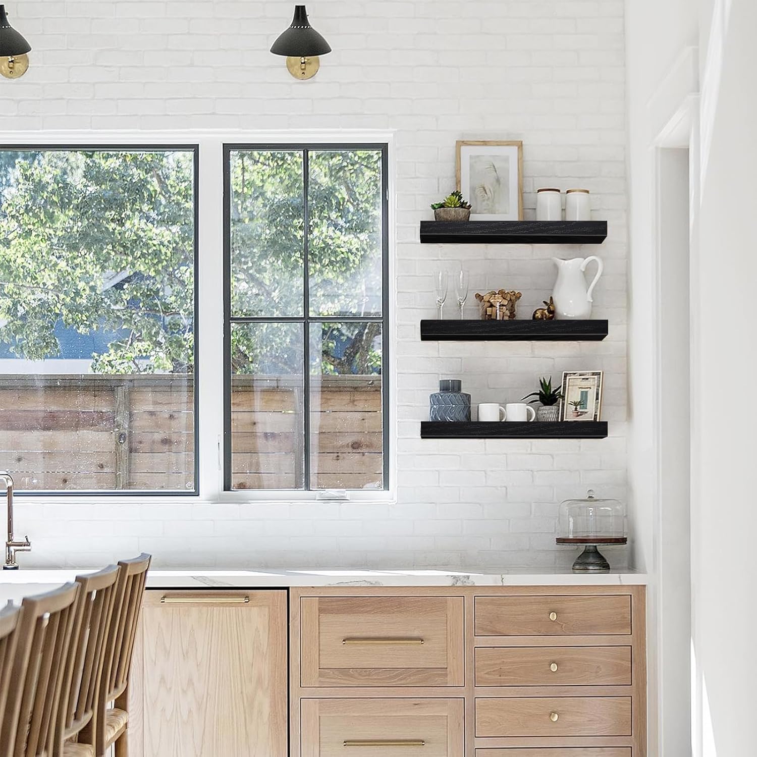QEEIG Floating Shelves for Wall Bathroom Shelf Bedroom Kitchen Living Room Hanging Book Shelves Small Farmhouse Decor 16 inch Set of 3, Black (015-B3)