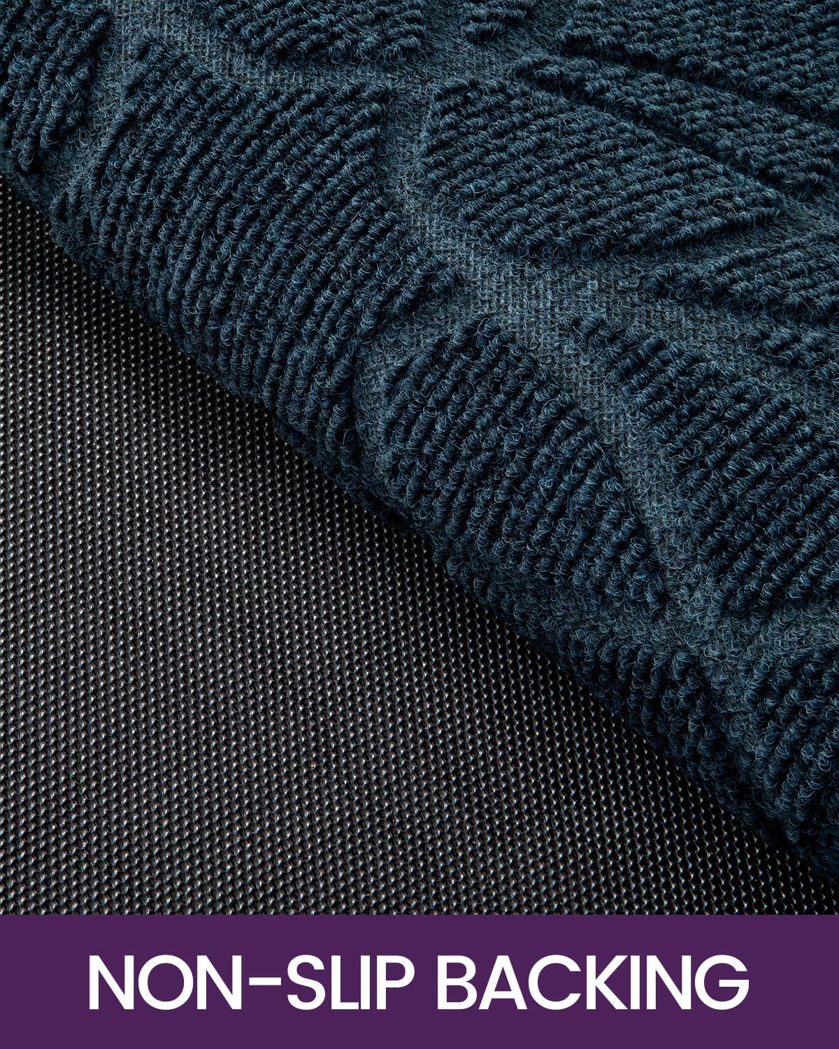 DEXI Front Door Mat Outside Entrance, Heavy Duty Non Slip Low Profile Doormat for Entryway, Trap Dirt and Moisture Welcome Mats, Easy Clean, Patio, Garage, 5x3, Blue