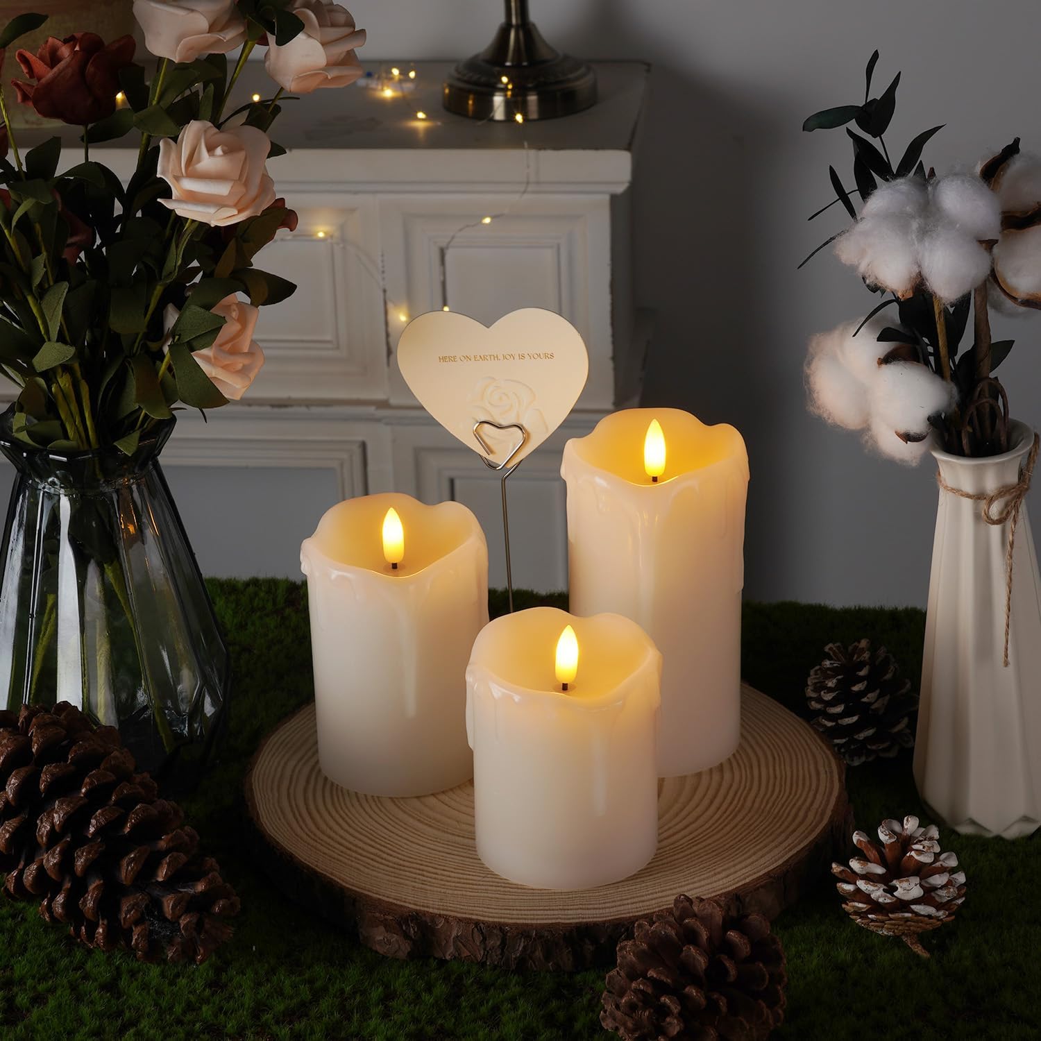 Homemory Dripping Wax Flameless LED Pillar Candles, Battery Operated with Remote Control and Timer, Set of 3, 5" H x 4" W x 6" D