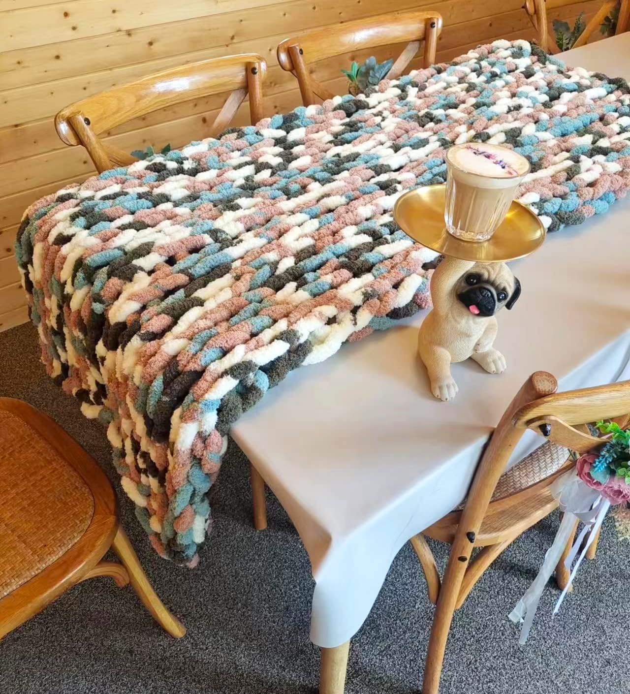 DDL&HEXI Chunky Chenille Blanket 100% Hand Knit with Jumbo Chenille Yarn (50"x60") Super Soft Large Throw Bed Blanket for Couch, Sofa, Home Decor - Machine Washable (02)